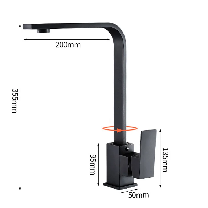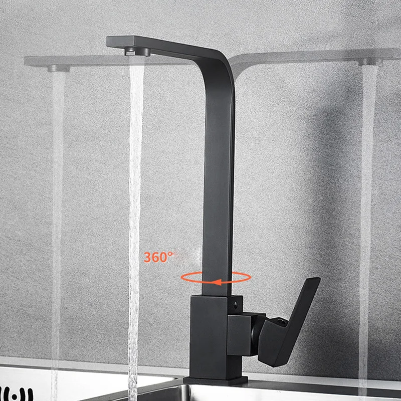Robinet de cuisine carré Bakicth noir mat robinet d’évier de cuisine chaud et froid Rotation à 360 degrés mitigeur robinets d’eau montés sur le pont