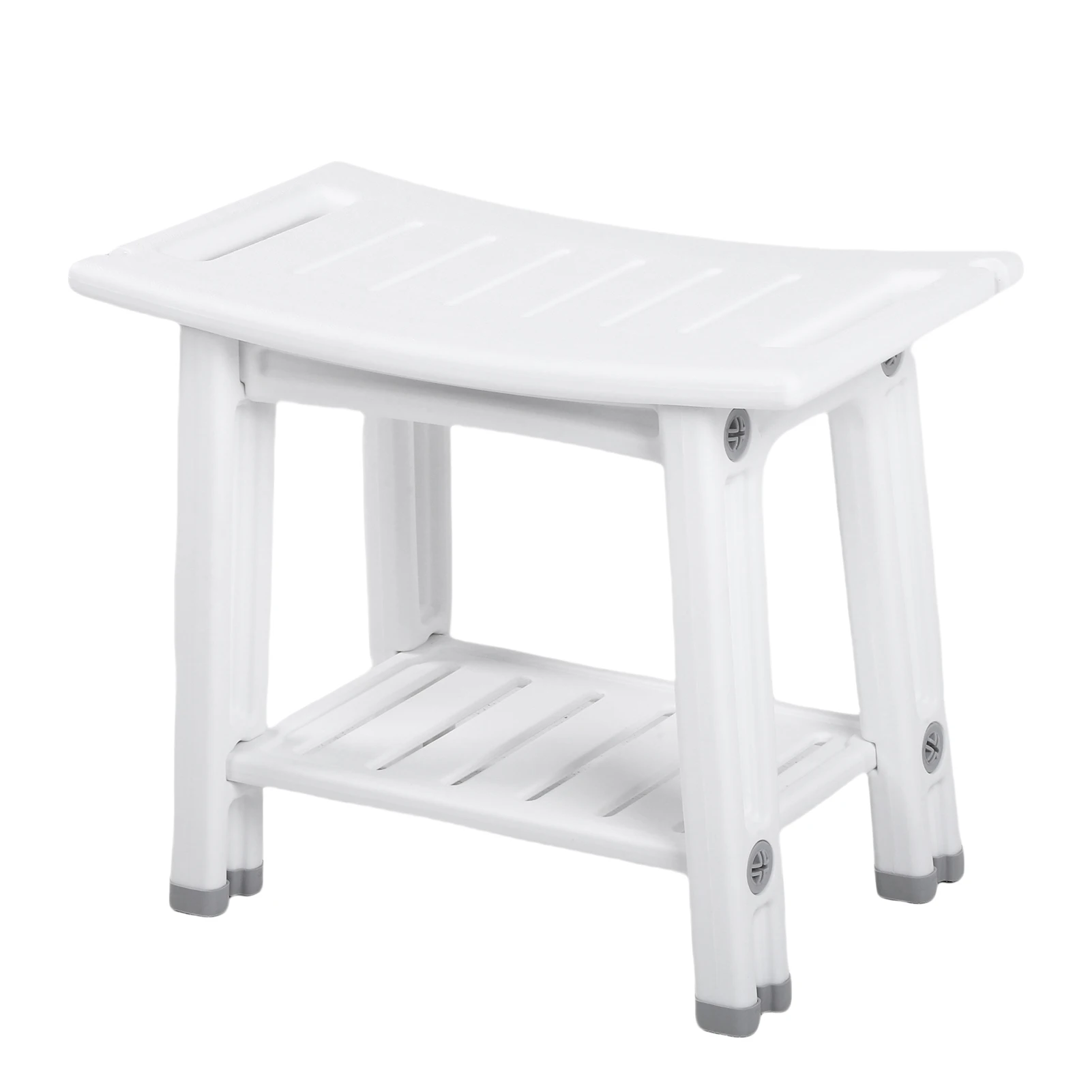 Bancs de douche HDPS Chaise de douche durable Espaces de rangement à 2 niveaux et tabouret étanche à double poignées avec coussinets antidérapants pour les pieds de rasage Facile à assembler pour une utilisation intérieure/extérieure :