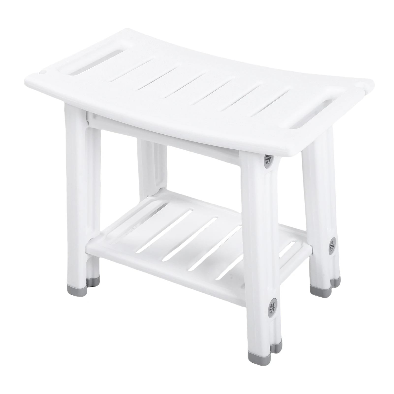 Bancs de douche HDPS Chaise de douche durable Espaces de rangement à 2 niveaux et tabouret étanche à double poignées avec coussinets antidérapants pour les pieds de rasage Facile à assembler pour une utilisation intérieure/extérieure