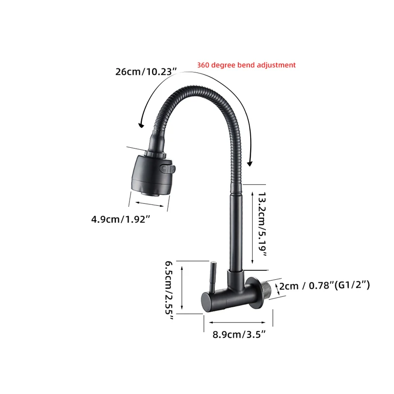 Robinet d'eau froide simple HOHardware monté au mur avec connexion mâle 360 ", balançoire résistante à 1/2