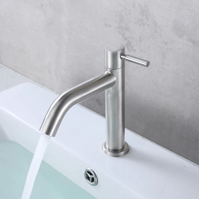 Salle de bain bassin robinet en acier inoxydable poignée unique robinet d’eau froide