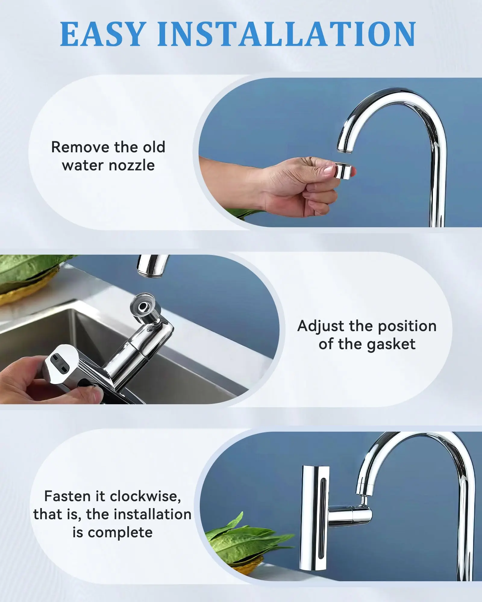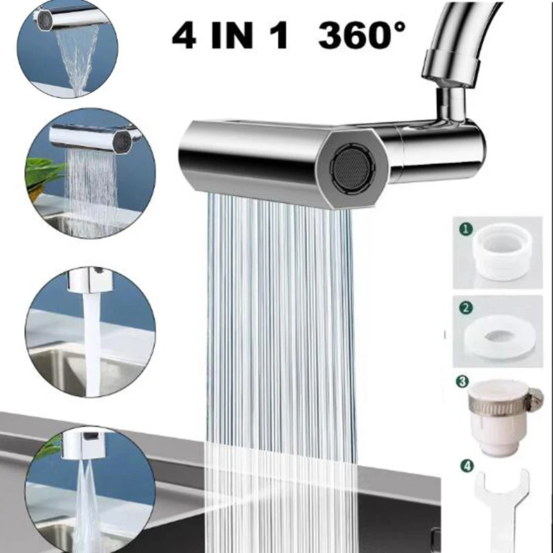 Barboteur de robinet de cuisine cascade résistant aux éclaboussures 360 °   Adaptateur d’eau d’extension de robinet de lavabo de peau de salle de bains pivotant pour évier de cuisineBarboteur de robinet de cuisine cascade résistant aux éclaboussures 360 ° Adaptateur d’eau d’extension de robinet de lavabo de peau de salle de bains pivotant pour évier de cuisine