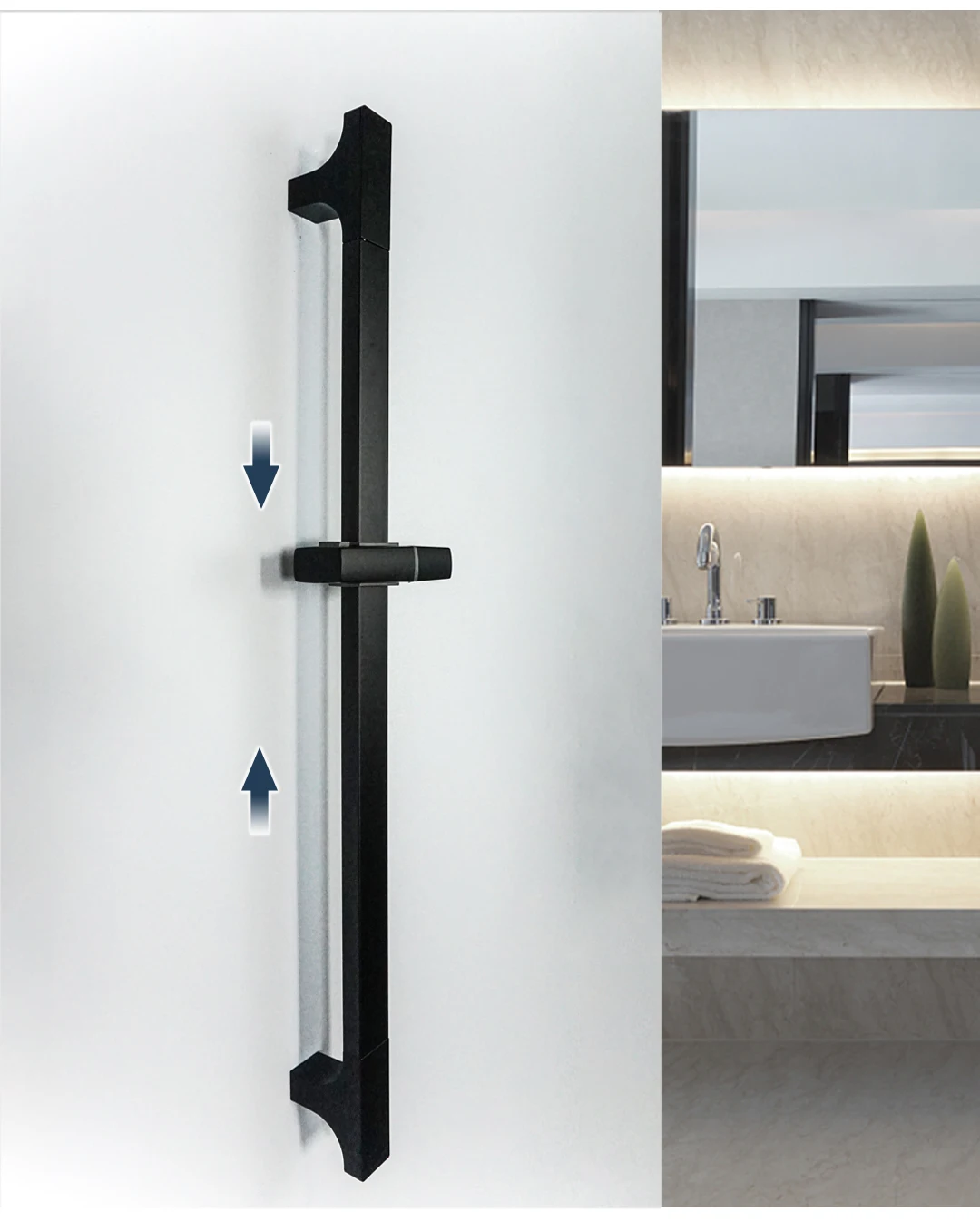 • Barre coulissante ajustable pour différentes tailles de douche