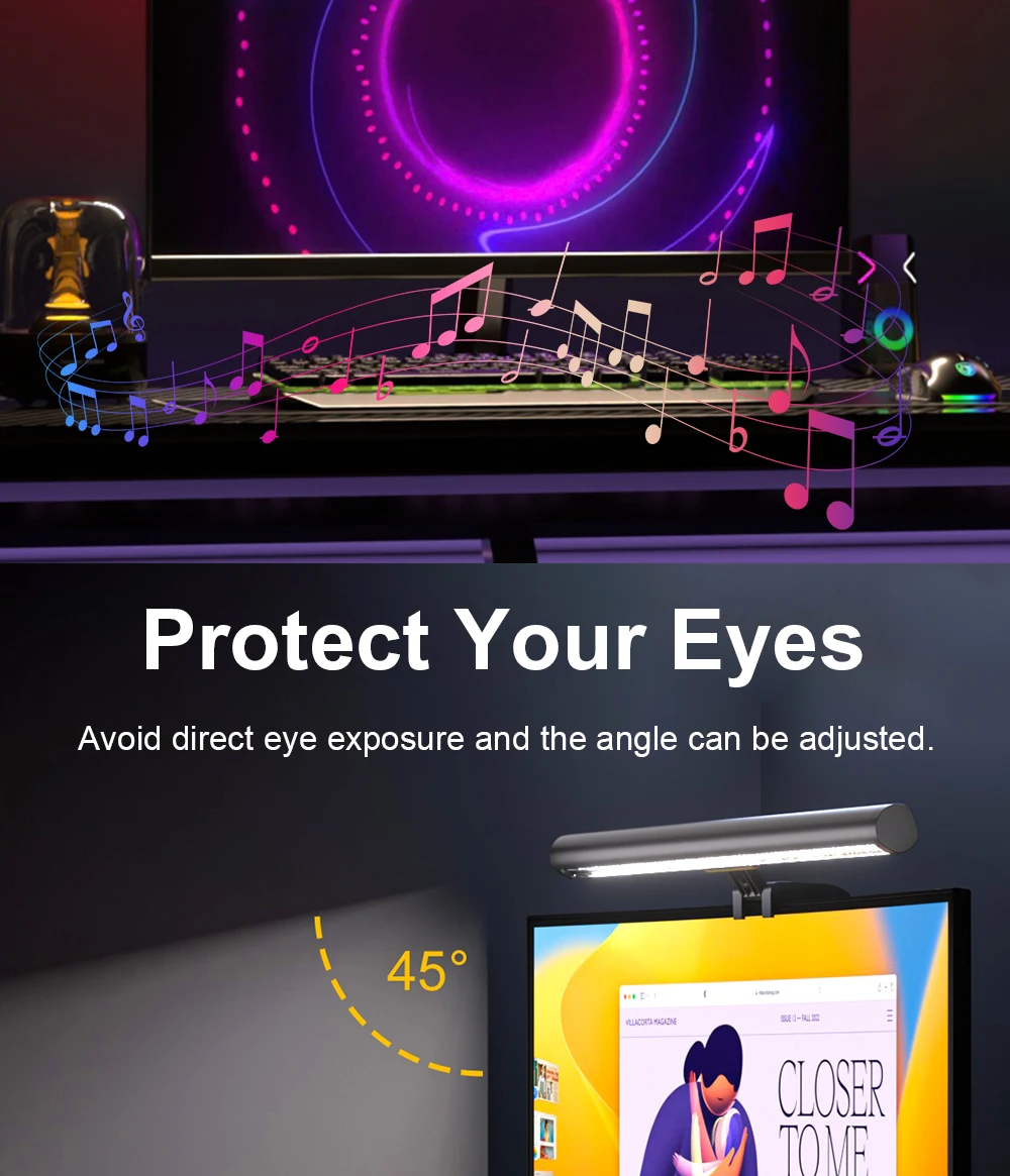 ꔷ Aucun éblouissement de l’écran: Conçu avec une technologie optique asymétrique, il minimise l’éblouissement de l’écran en dirigeant précisément la lumière vers le clavier et le bureau, éliminant le scintillement et réduisant la fatigue oculaire pour une expérience visuelle confortable.