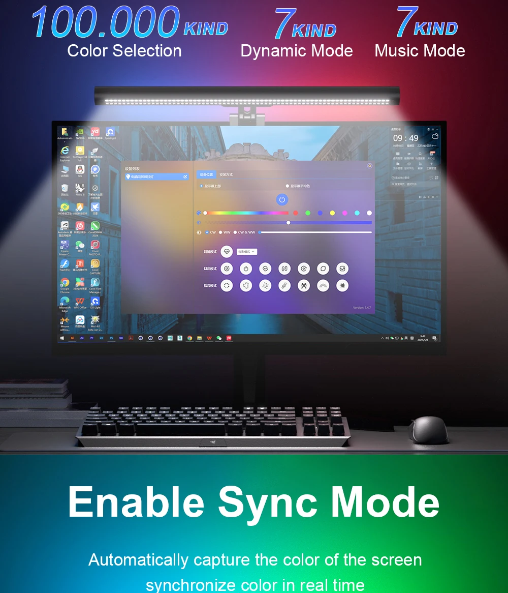 Avec une télécommande personnalisable, ce rétroéclairage RVB offre 4 températures de couleur réglables (2 700 K-7500 K), une gradation de luminosité infinie et 7 modes RVB vibrants pour correspondre à vos préférences personnelles.L’option de lumière blanche fournit un éclairage polyvalent pour le bureau à domicile, la lecture, le divertissement et les loisirs.L’abat-jour transparent, doté d’une texture délicate, minimise l’éblouissement direct et imite la lumière naturelle, créant un environnement confortable et immersif pour une utilisation prolongée.