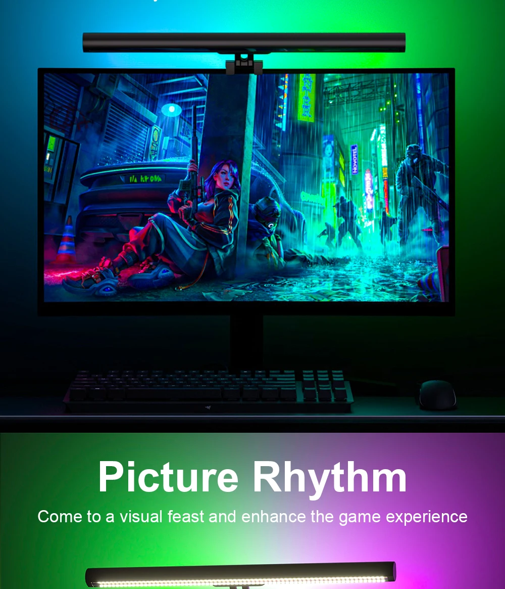 Barre lumineuse RGB pour moniteur d’ordinateur, lampe de bureau de lecture USB, écran LED suspendu, soins des yeux, gradation de la température de couleur, pour le bureau et la maison