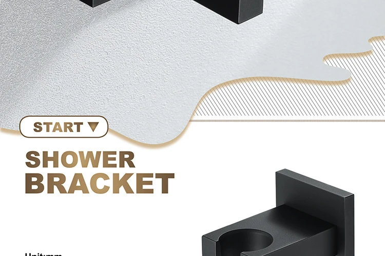 Base de douche murale chromée noir or, pomme de douche carrée à main avec Base d'entrée d'eau, accessoires de salle de bains