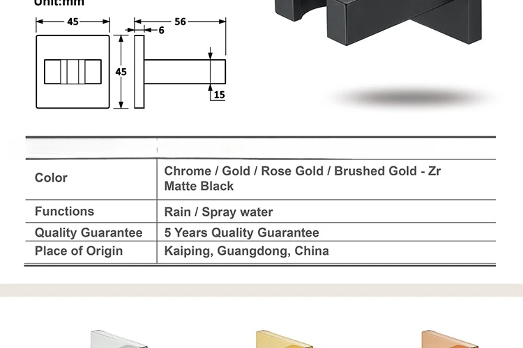 Base de douche murale chromée noir or, pomme de douche carrée à main avec Base d’entrée d’eau, accessoires de salle de bainsBase de douche murale chromée noir or, pomme de douche carrée à main avec Base d’entrée d’eau, accessoires de salle de bains