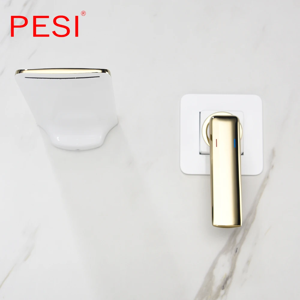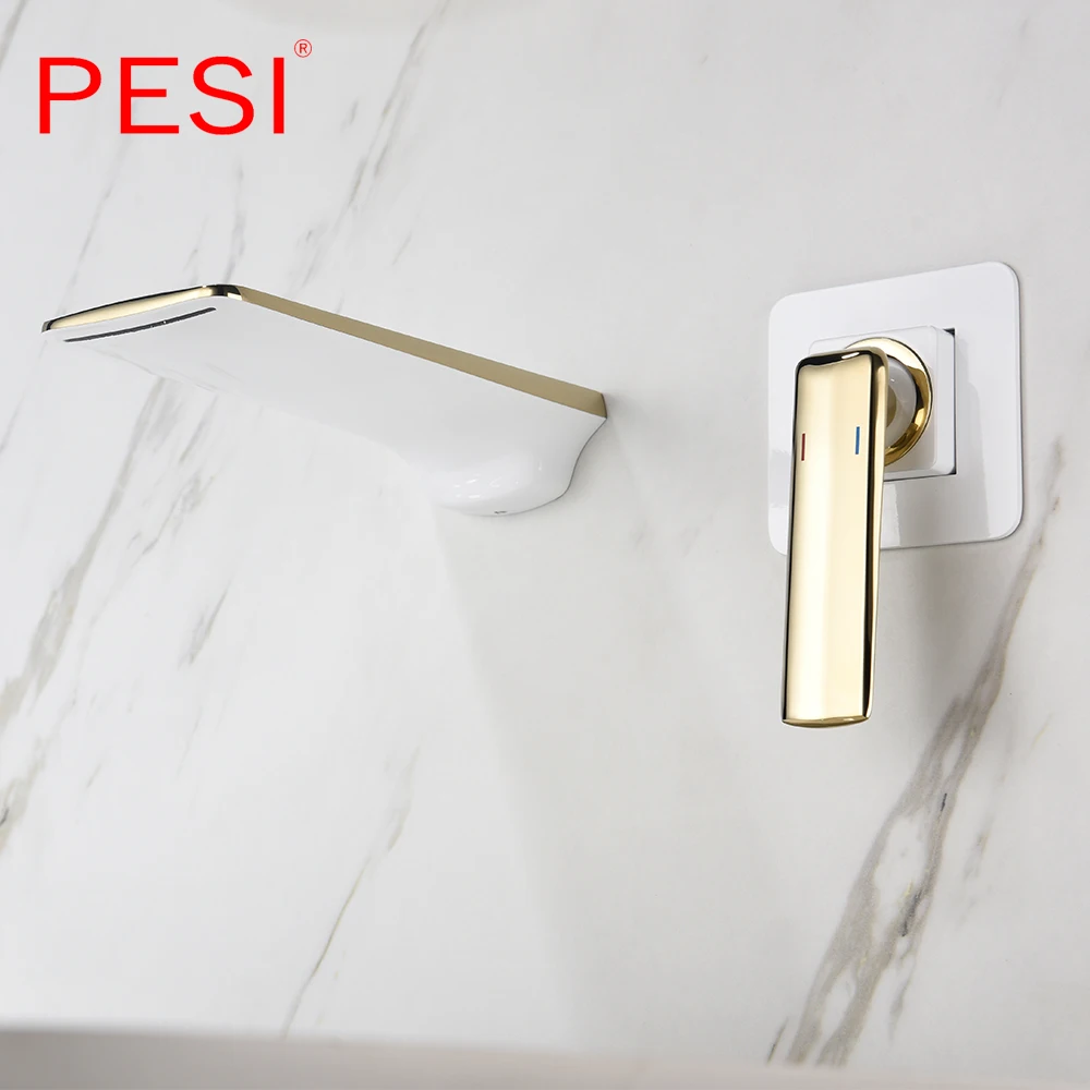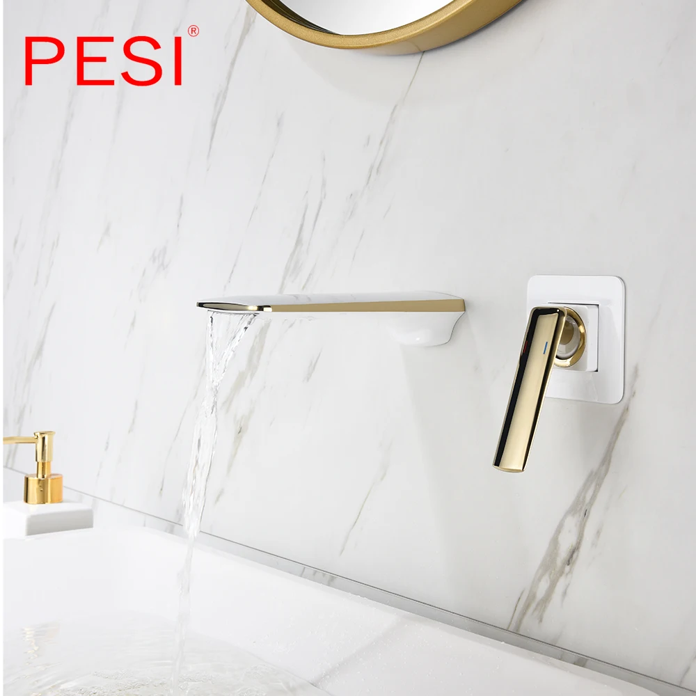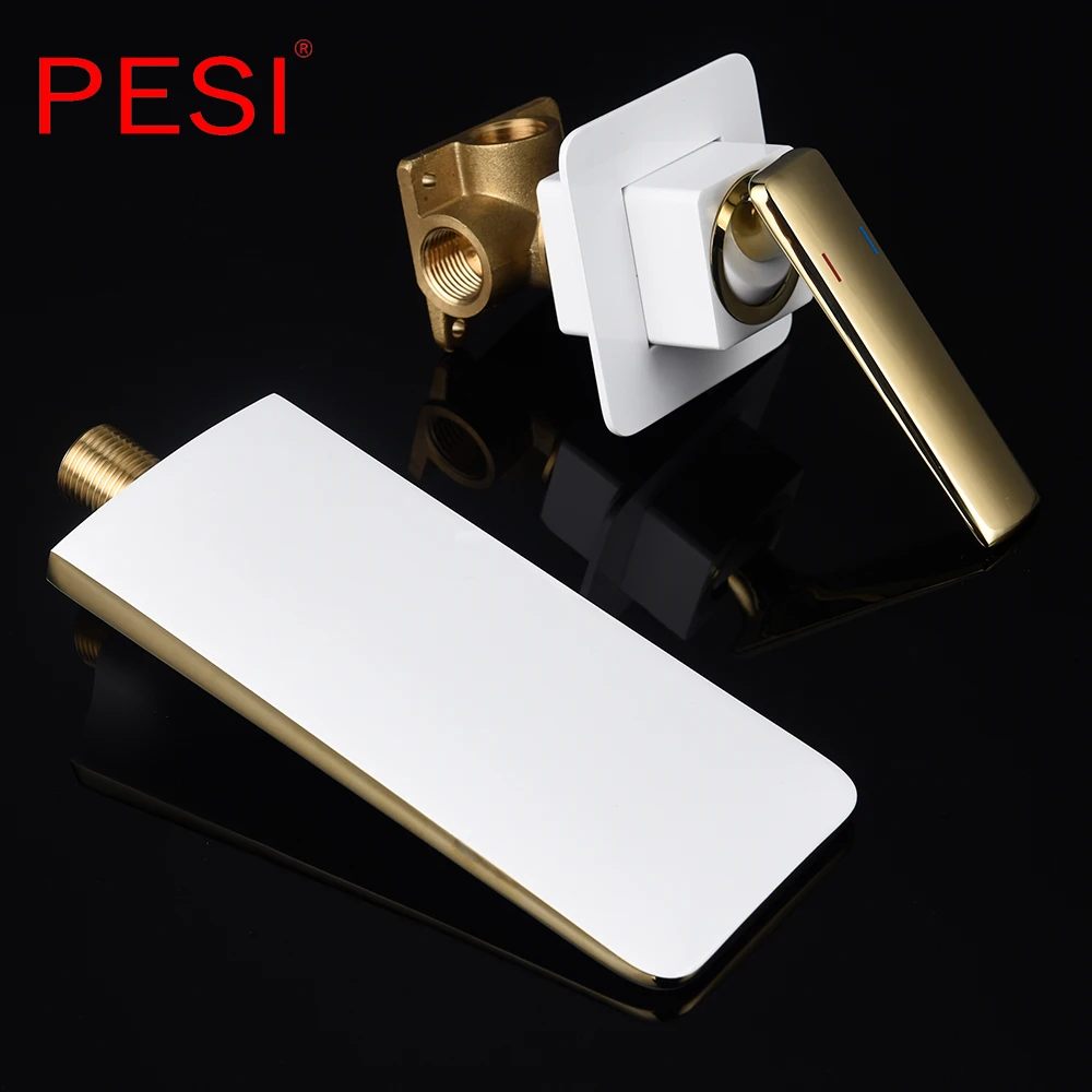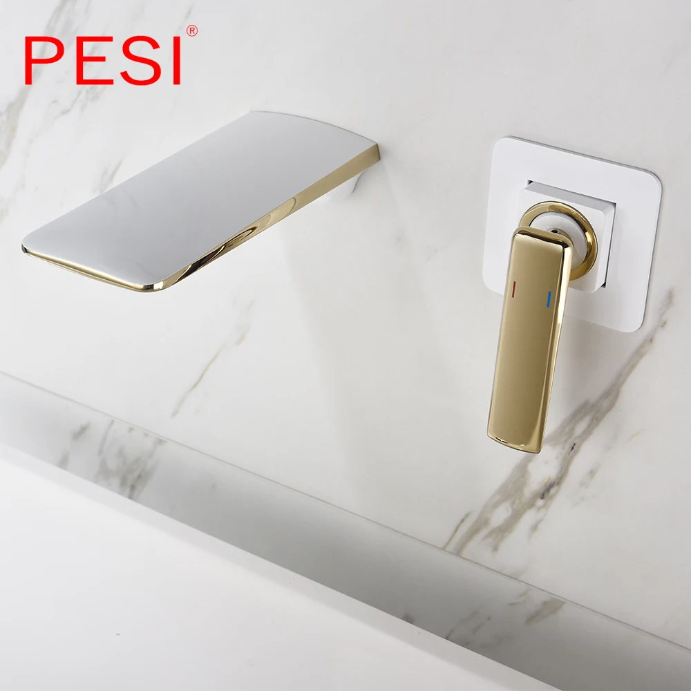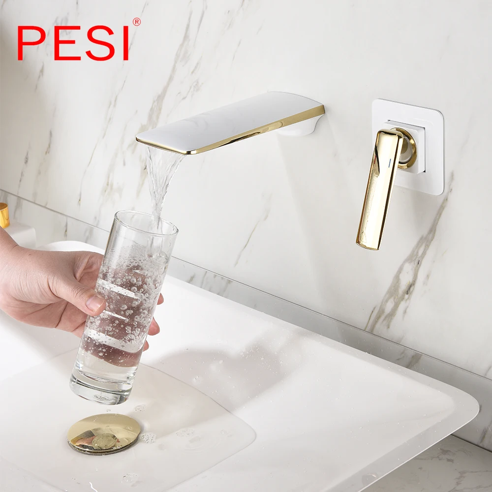 Robinet de lavabo à cascade mural Robinet de lavabo blanc et doré Robinet de lavabo de cuisine Robinet à double commande chaud et froid.
