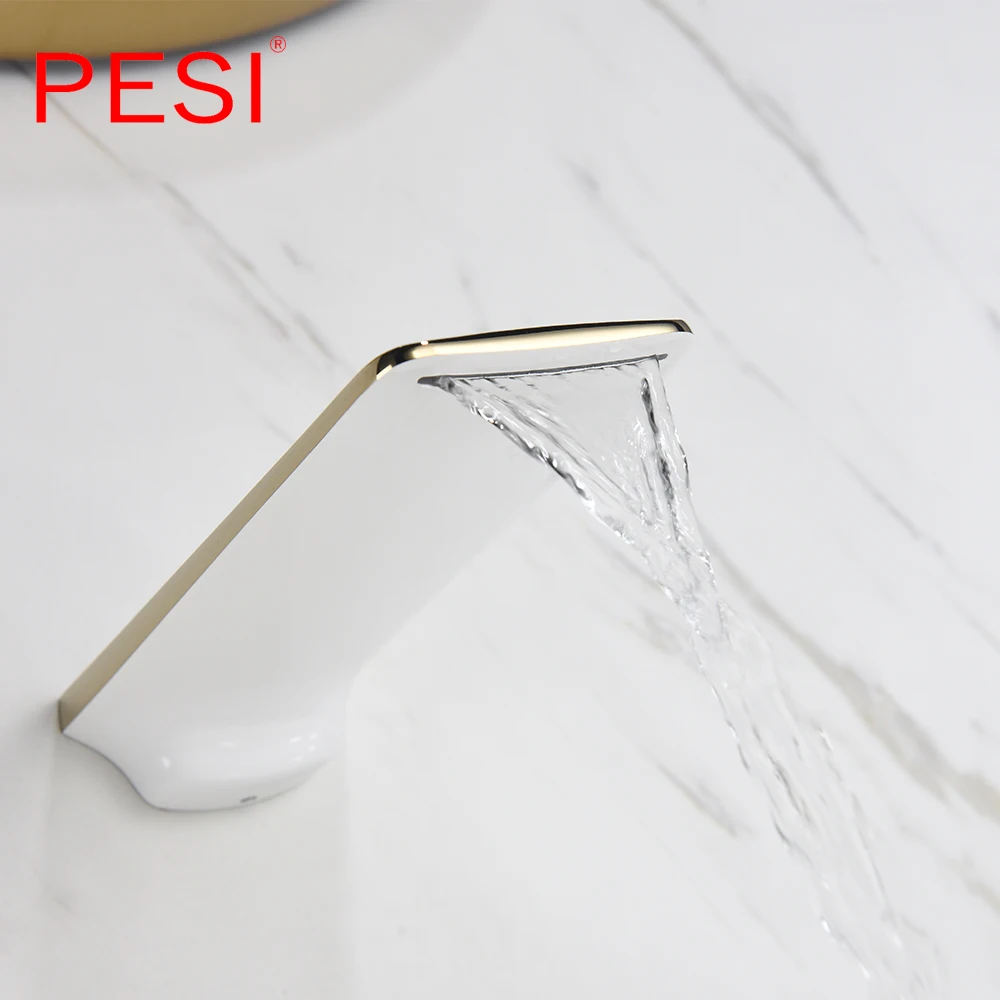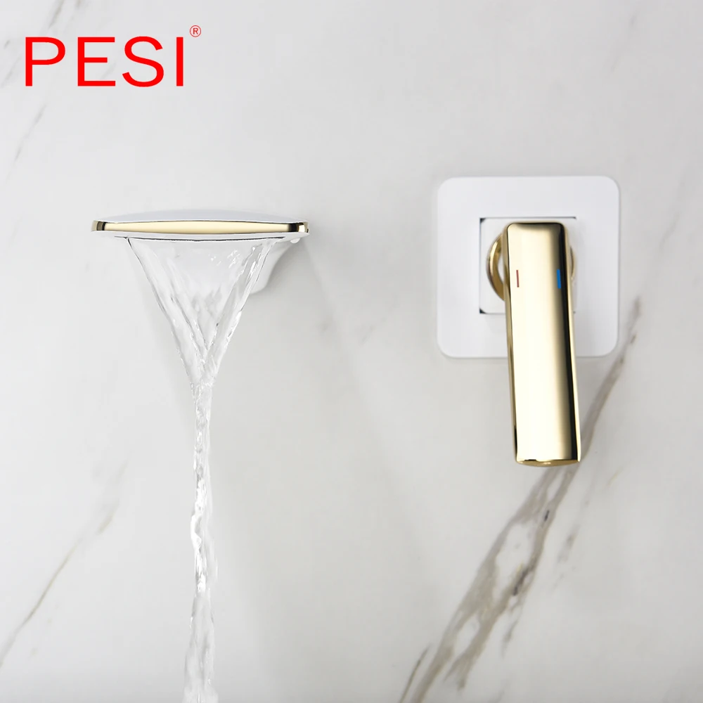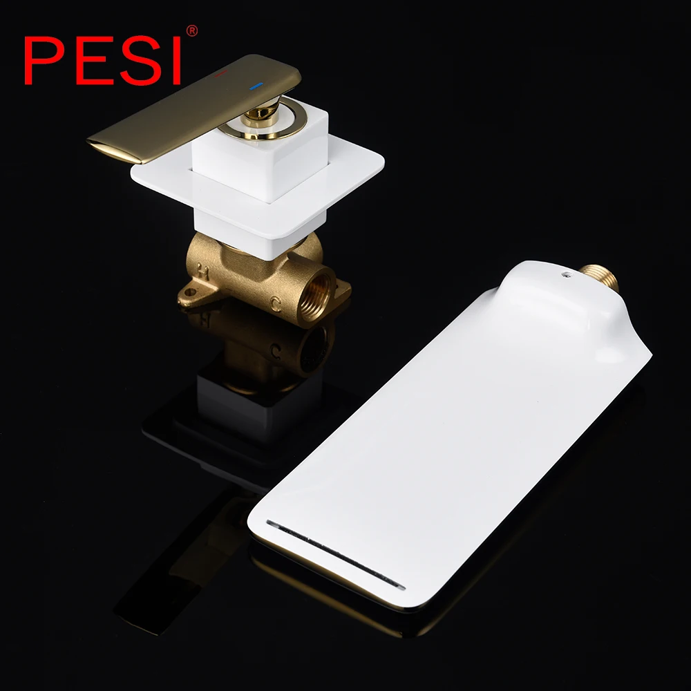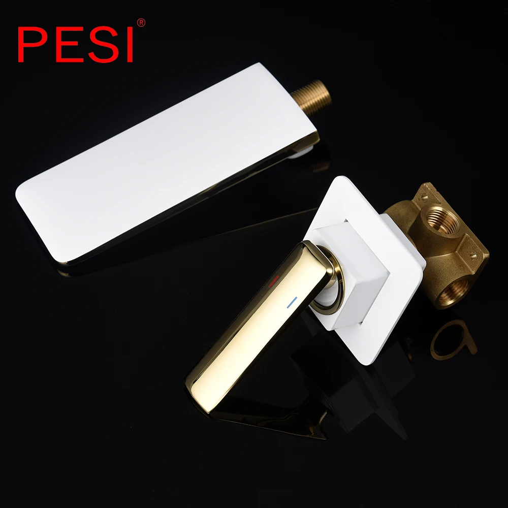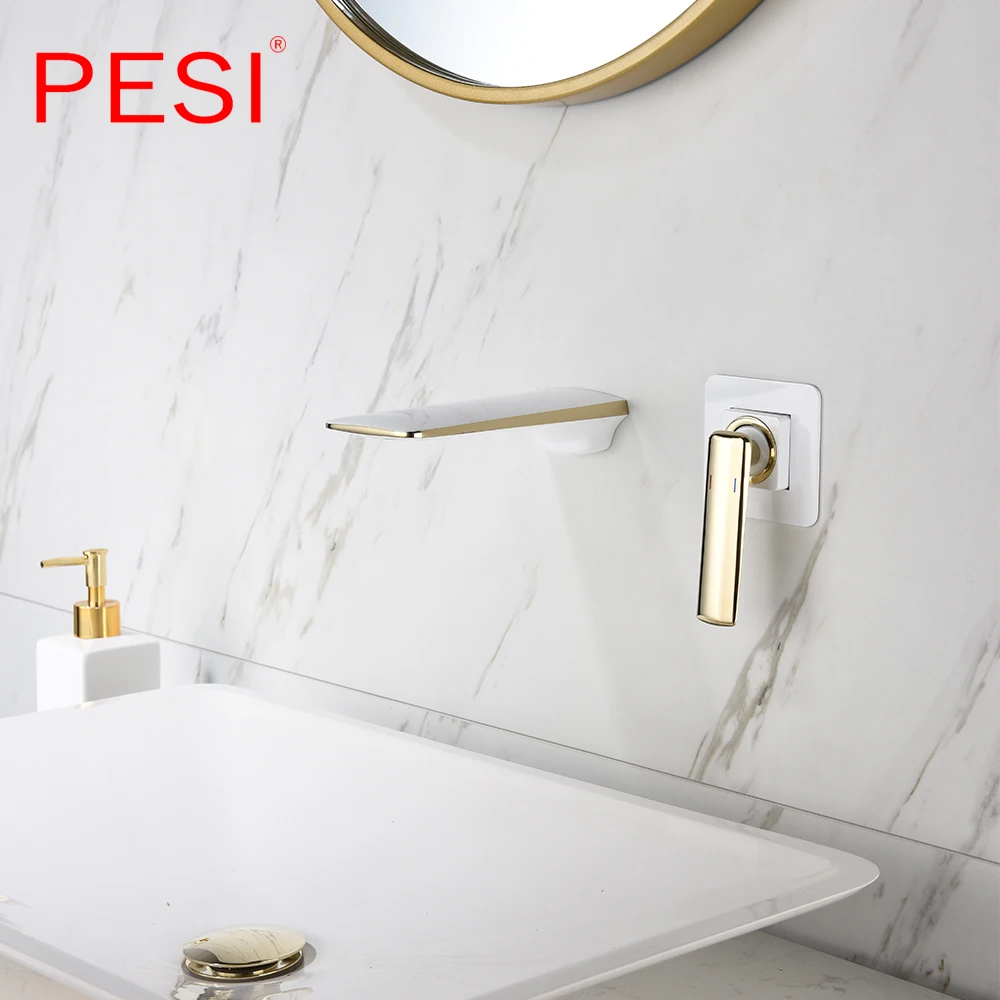 Robinet de lavabo à cascade mural Robinet de lavabo blanc et doré Robinet de lavabo de cuisine Robinet à double commande chaud et froid.