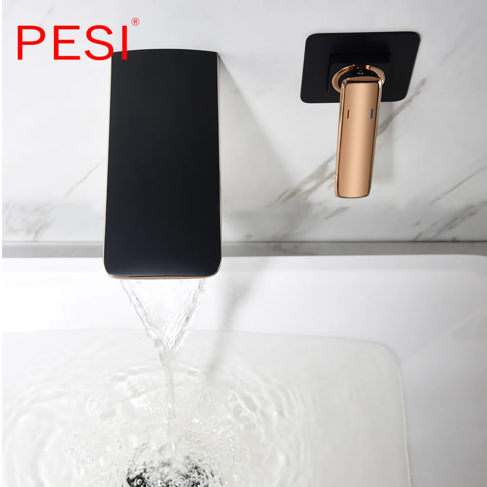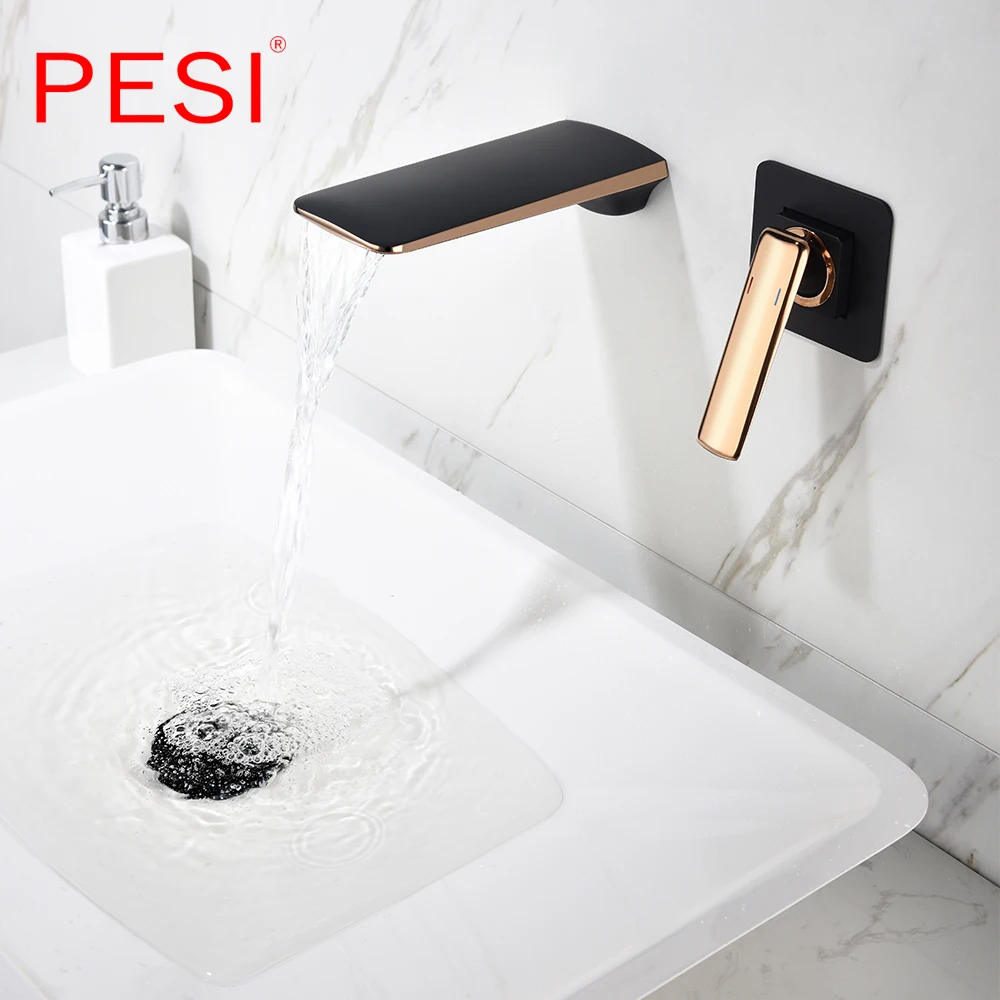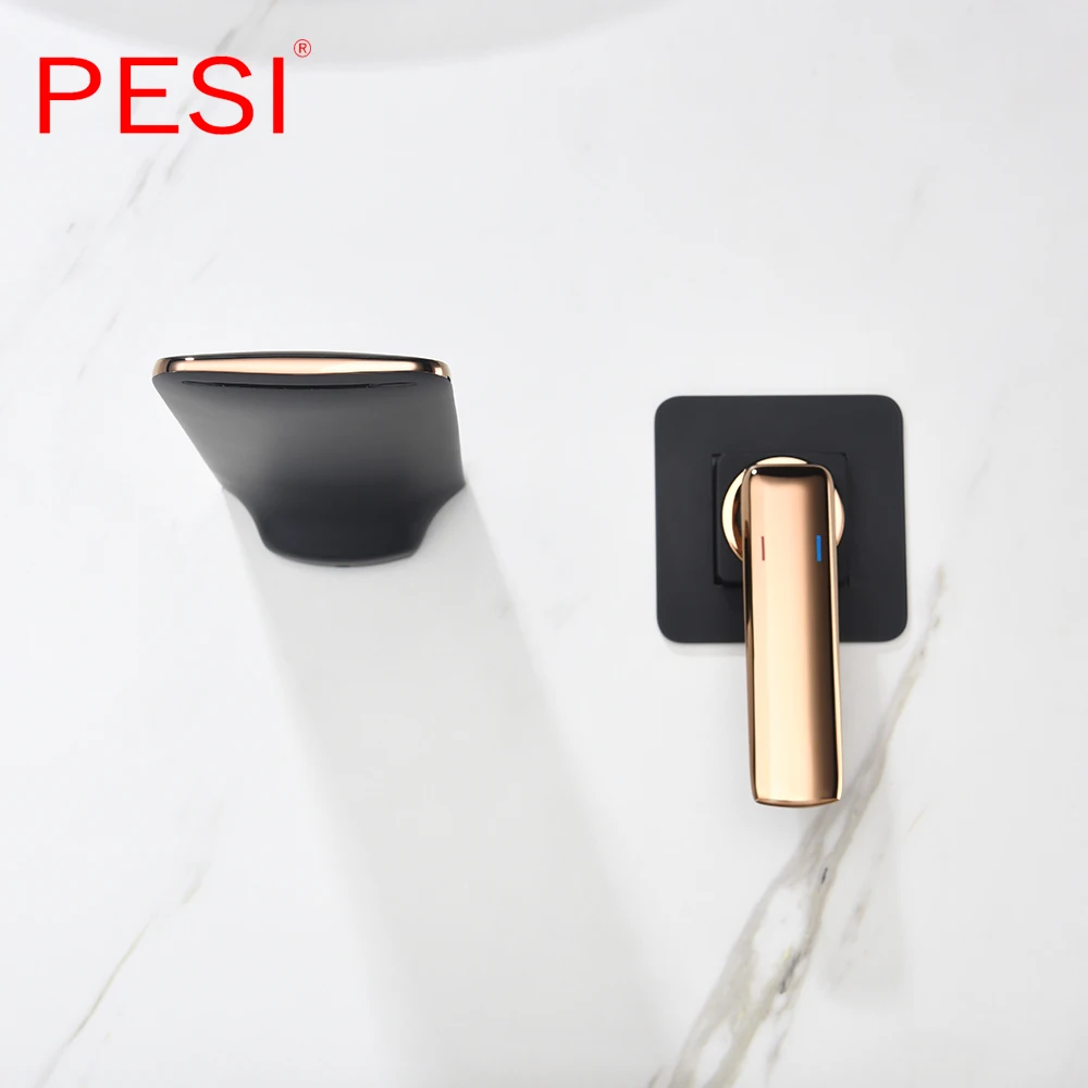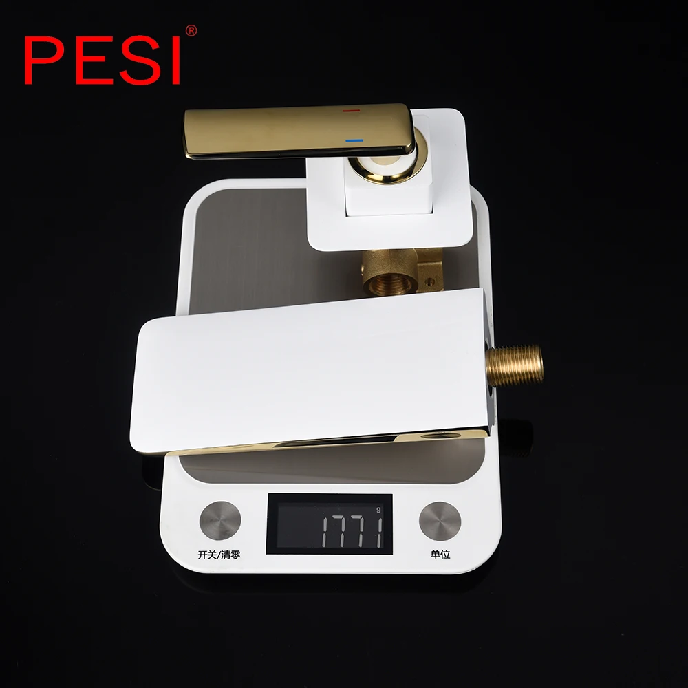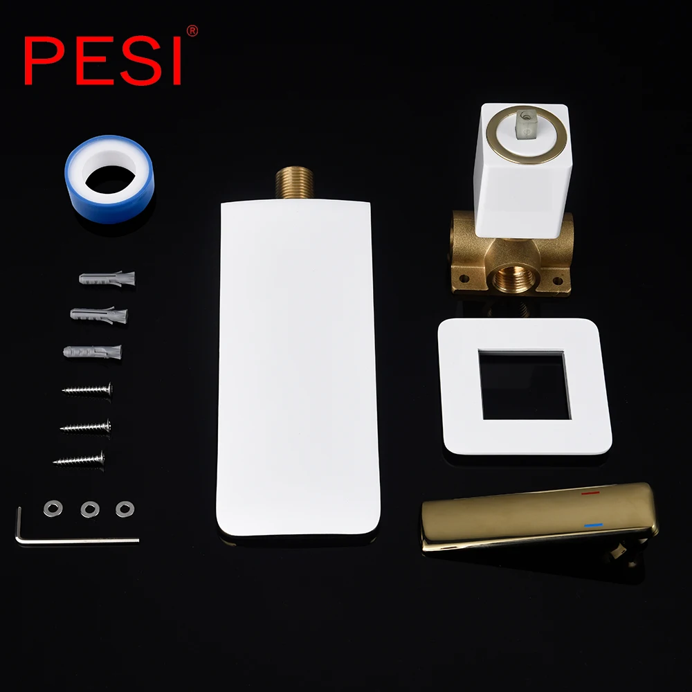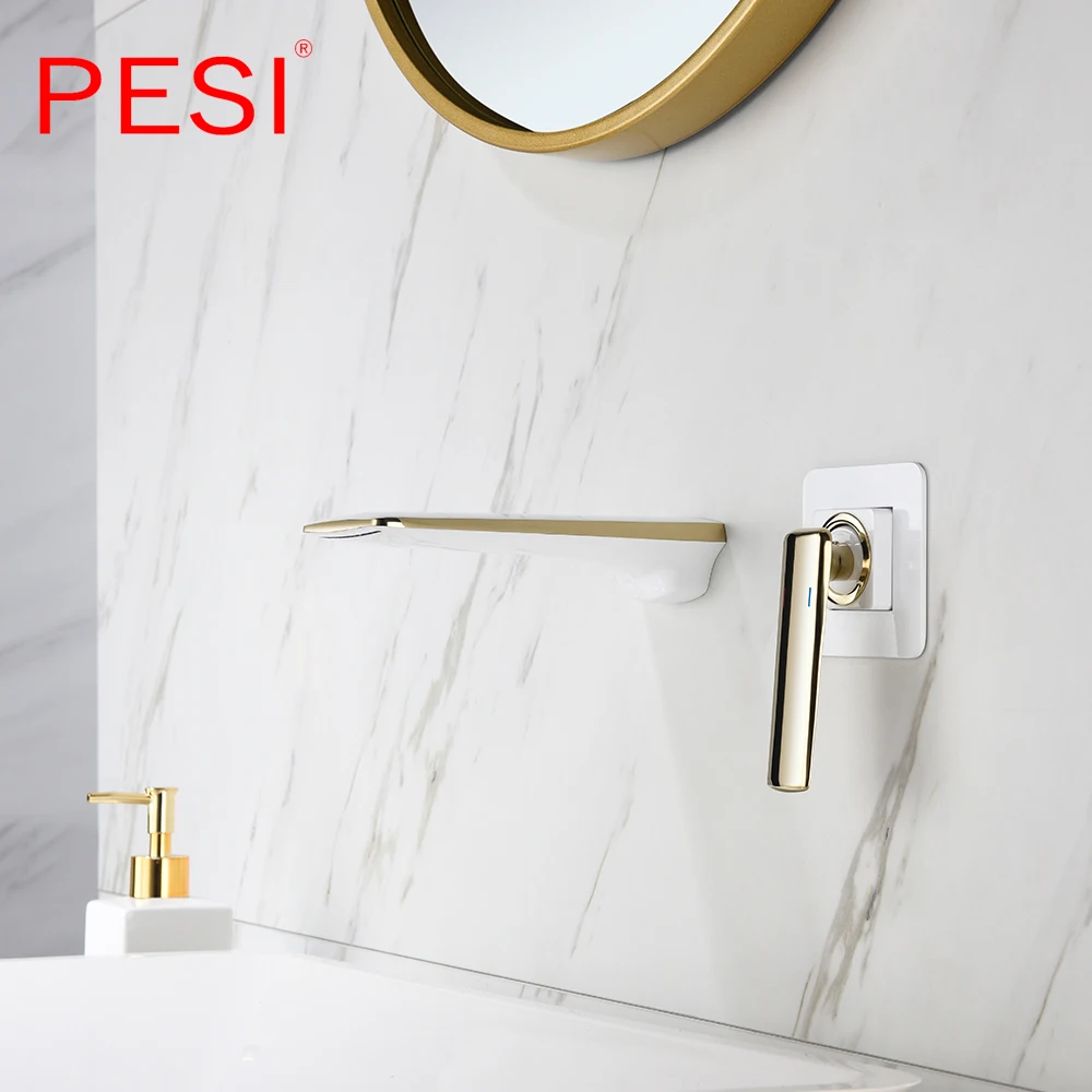 Robinet de lavabo à cascade mural Robinet de lavabo blanc et doré Robinet de lavabo de cuisine Robinet à double commande chaud et froid.