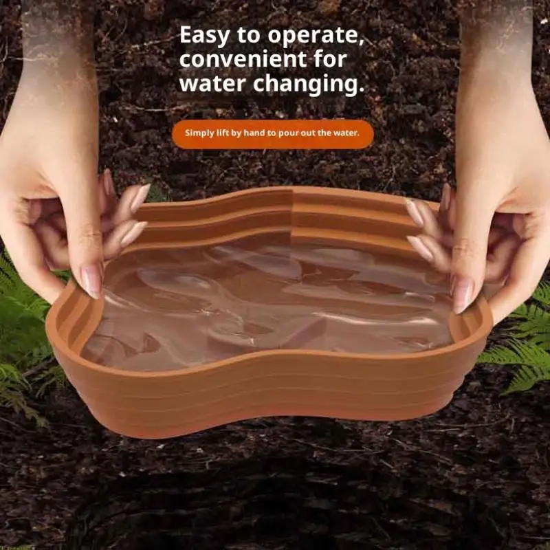 [Design de rampe antidérapante] Cette bol d’eau pour reptiles est conçue avec des rampes antidérapantes. Les rampes à faible angle avec une texture à rainure ondulée sont antidérapantes, qui peuvent aider efficacement les reptiles pour sortir et vers le bas de la pente et empêchent la chute.