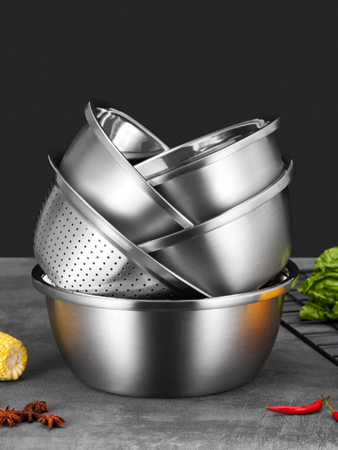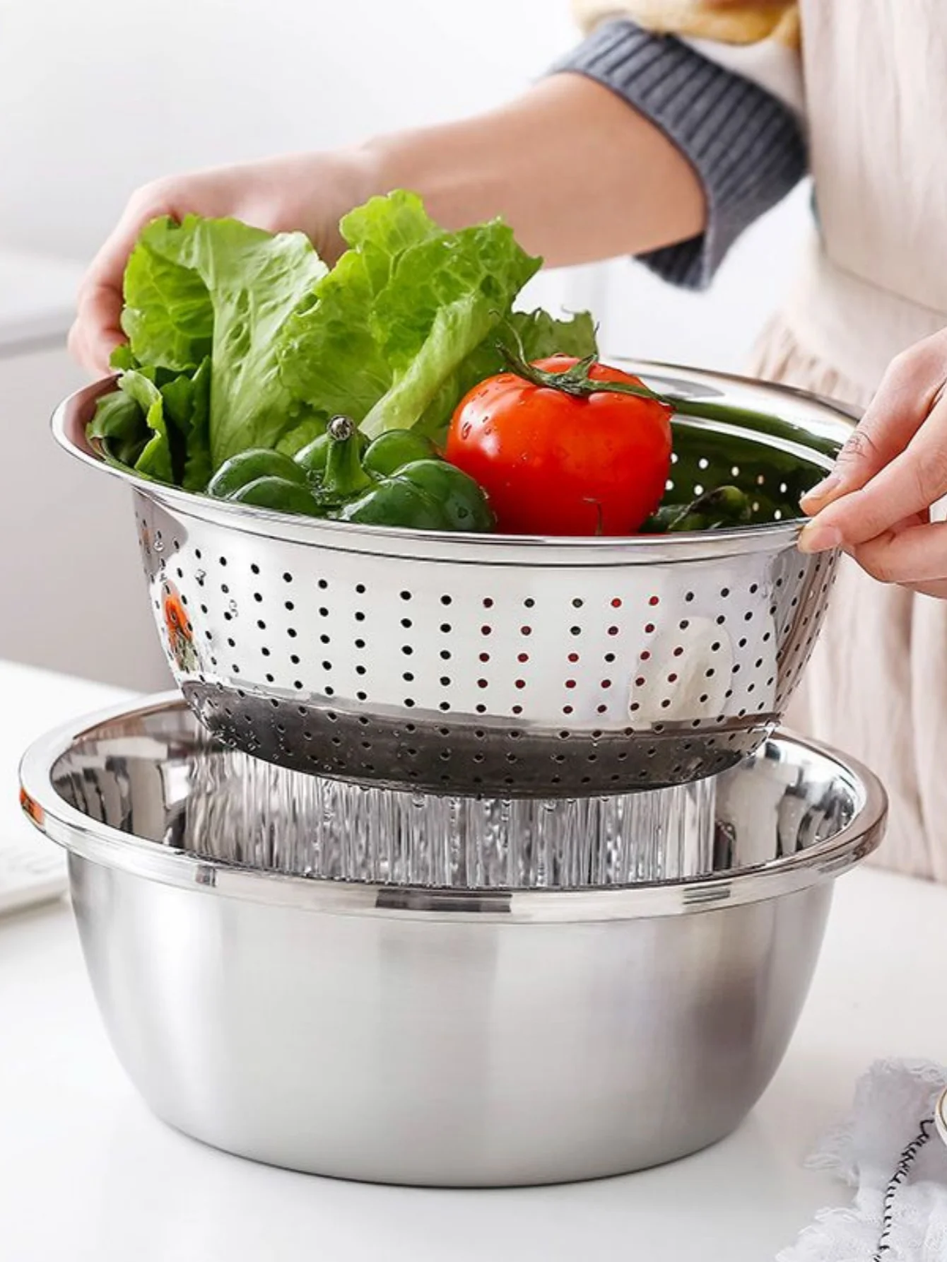 Bassin de vidange de tamis de riz en acier inoxydable épaissi, panier perforé, bassin de lavage de légumes, bassin de lavage de riz, bassin de fuite |