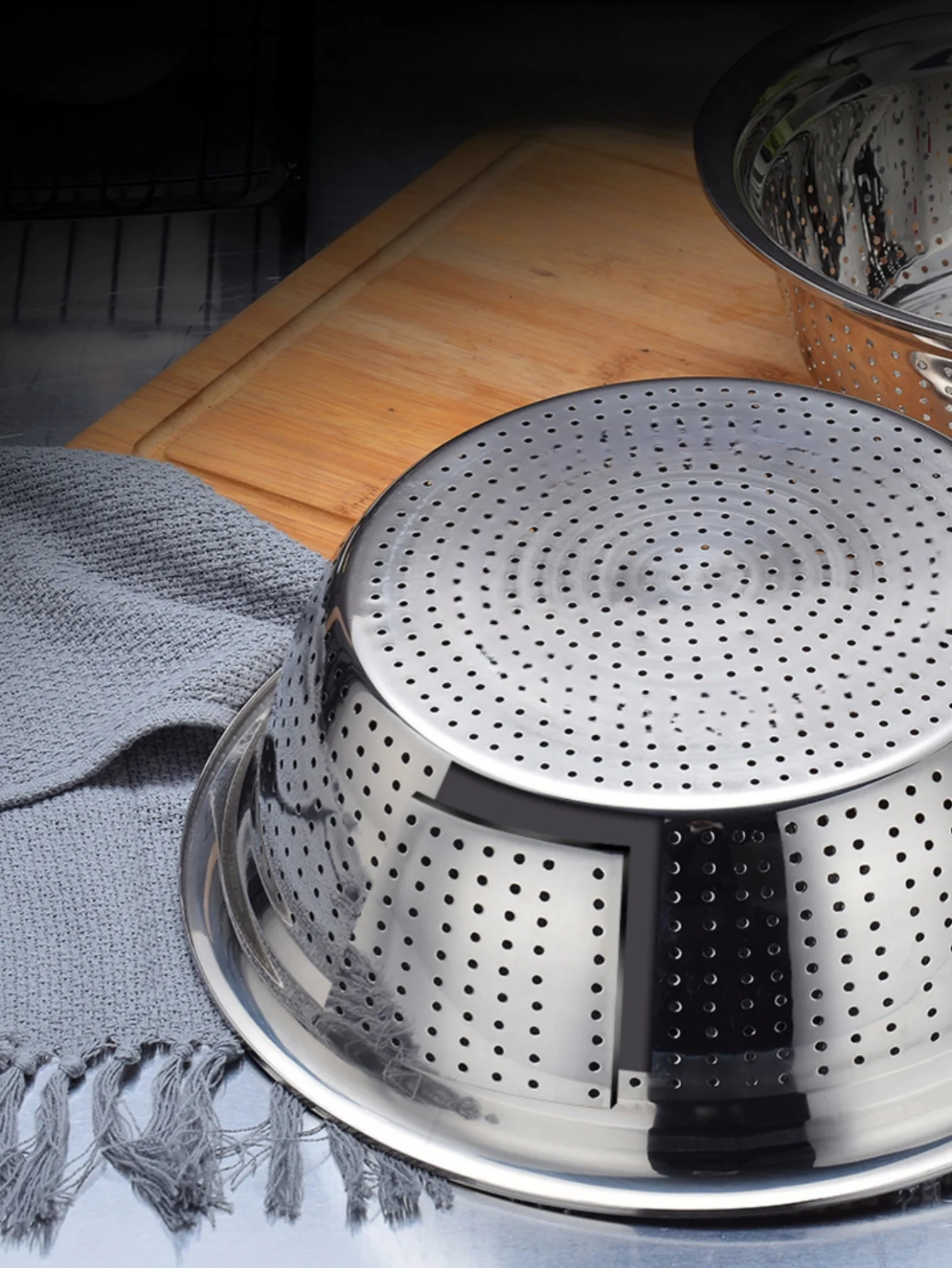 Bassin de vidange de tamis de riz en acier inoxydable épaissi, panier perforé, bassin de lavage de légumes, bassin de lavage de riz, bassin de fuite