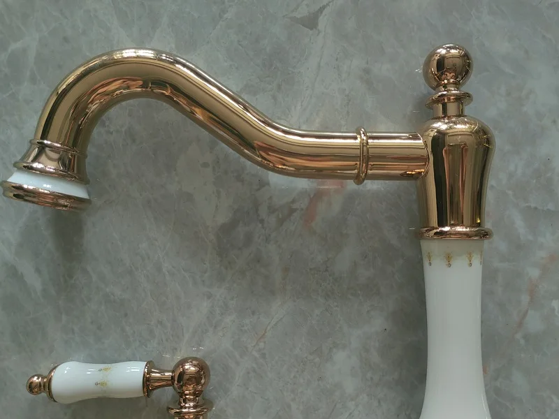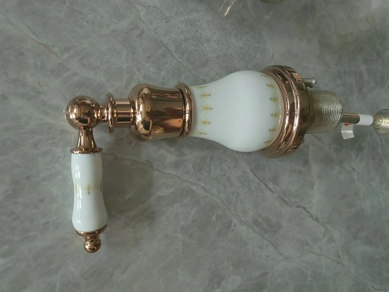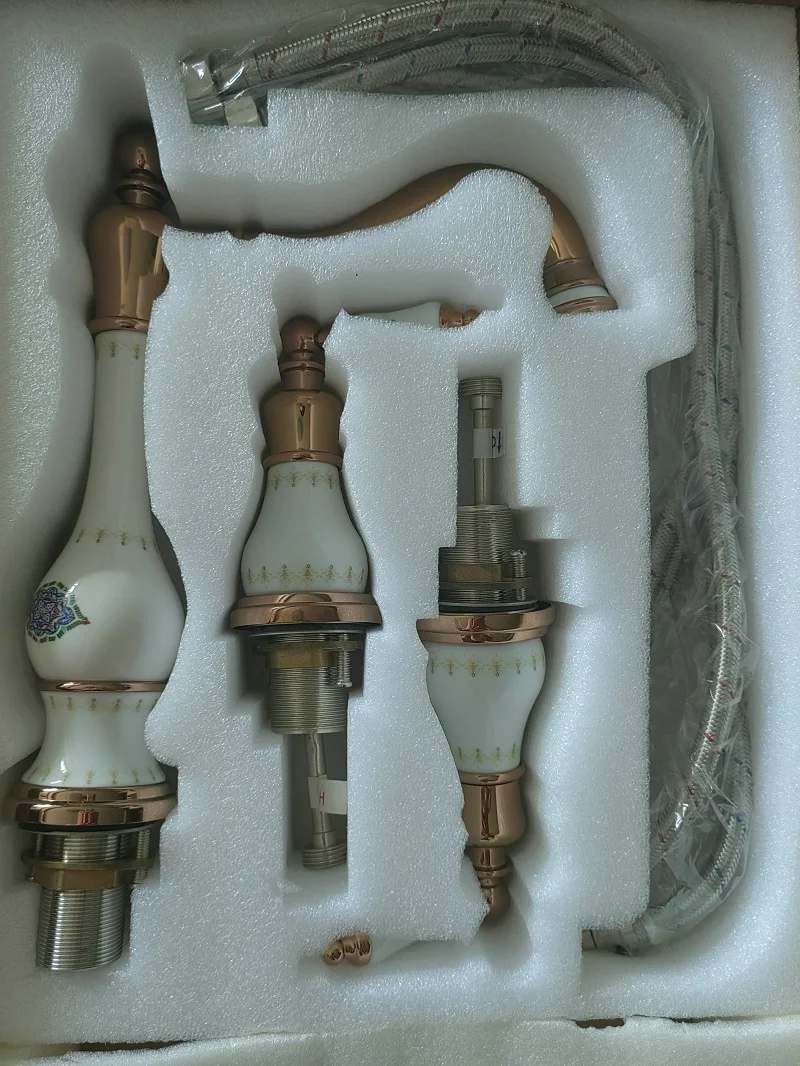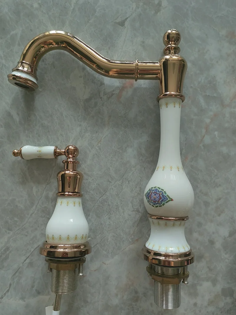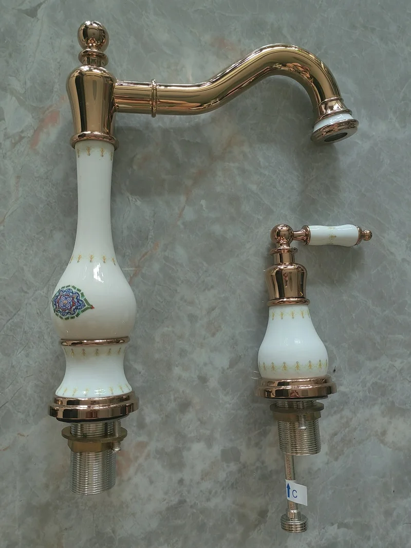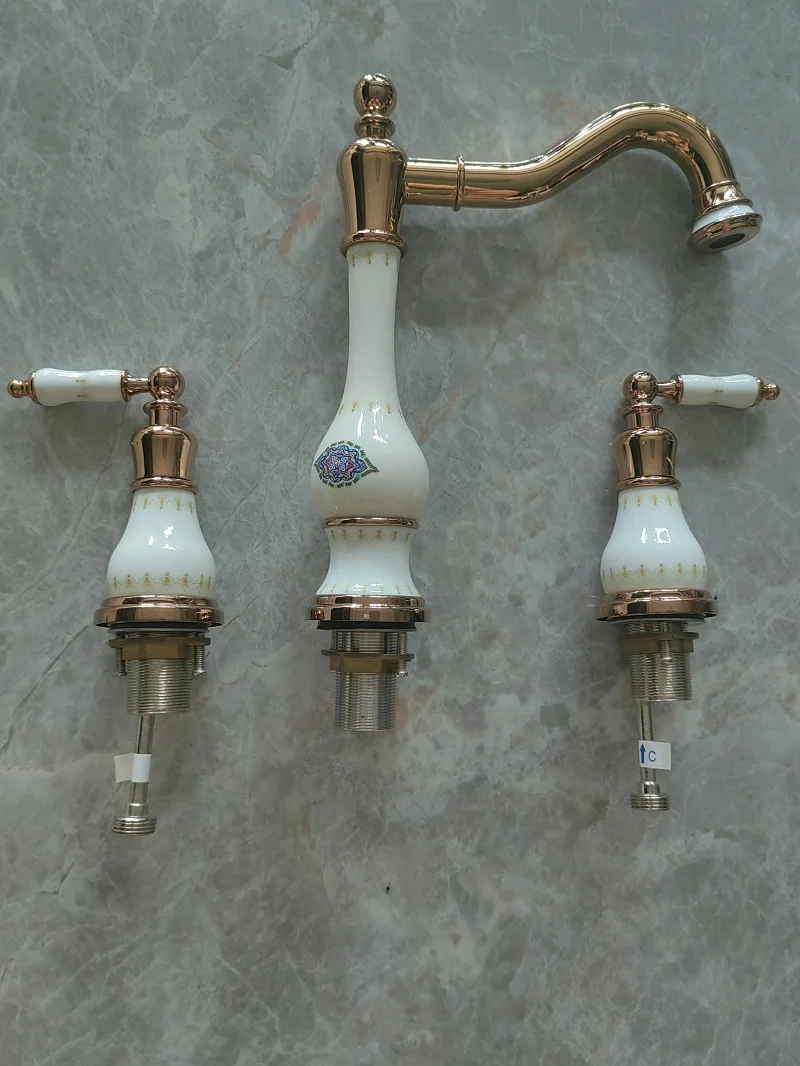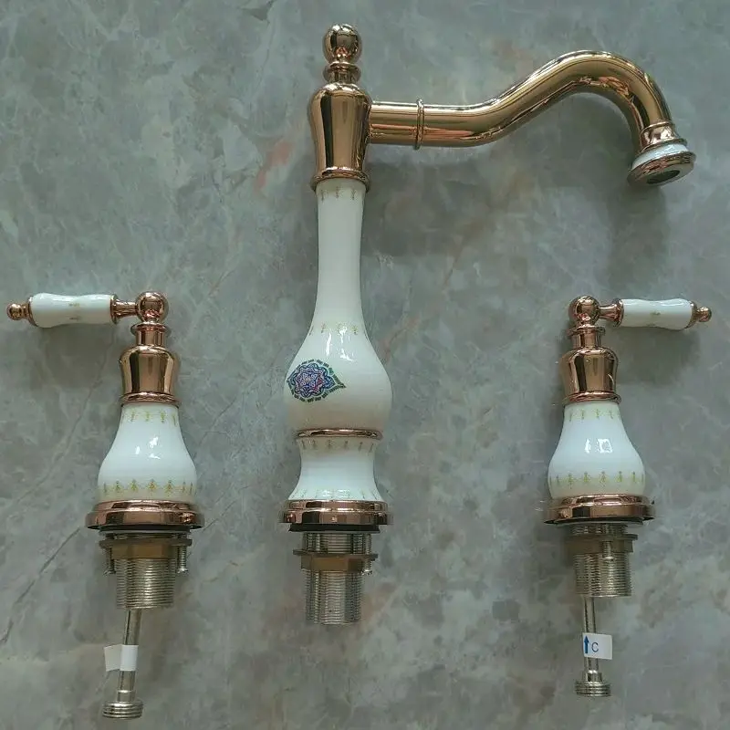 Robinet de lavabo de salle de bain en laiton or Rose de luxe trois trous deux poignées robinet de lavabo d’eau chaude et froide de haute qualité robinet de lavabo doré