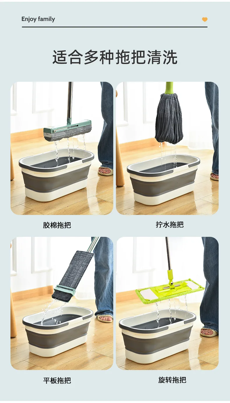 Seau à vadrouille Portable, panier à linge pliable avec roue, bassin d’eau pliable, article domestique pour laver la pêche, le Camping
