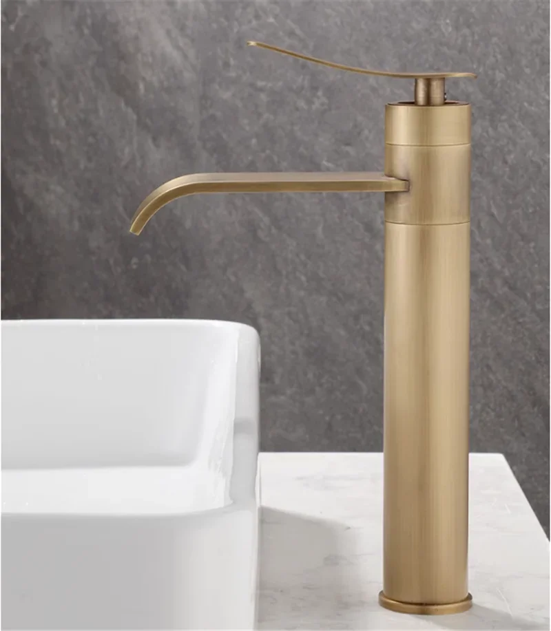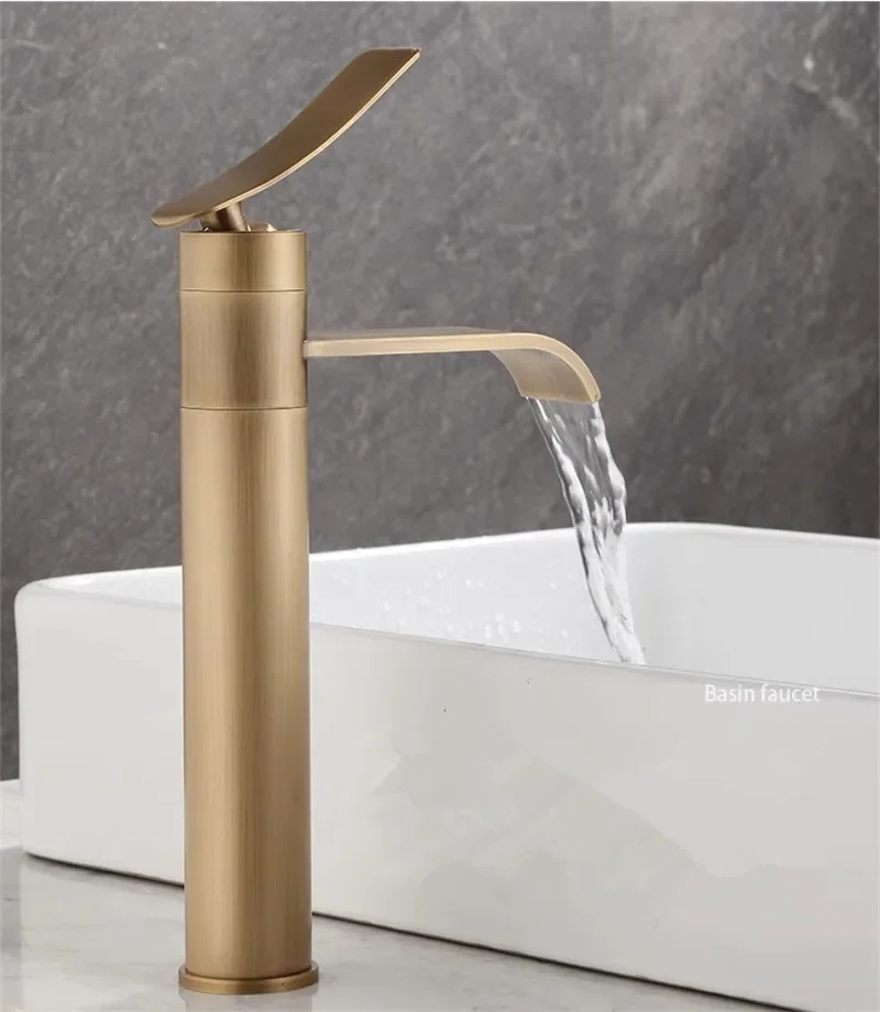 Robinet de lavabo en Bronze Antique, robinet de salle de bains en laiton chaud et froid, robinet de lavabo de salle de bains monté sur le pont, mitigeur d’eau