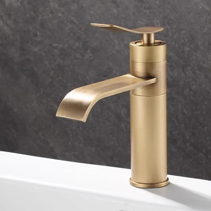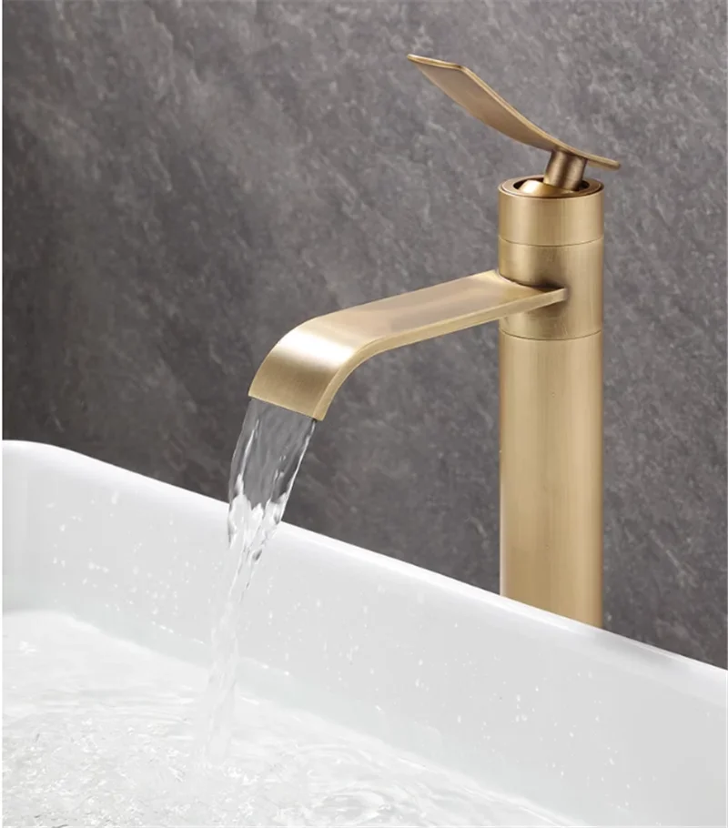Robinets de lavabo en Bronze Antique, robinet de salle de bains en laiton chaud et froid, robinet d’évier de salle de bains monté sur le pont, robinet de lavabo mélangeur d’eau