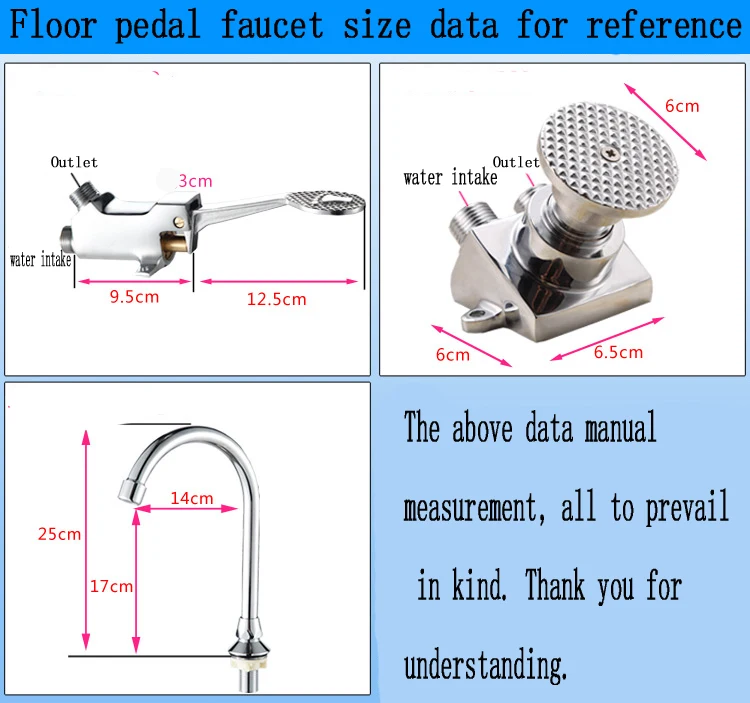 Installation method: first, foot valve fixed sink beneath the ground, then connect the trachea, the water suction nozzle arranged in the basin in the hole, the connecting hose is connected to the water inlet valve of the water mouth and slobber pedal, pedal can turn the water