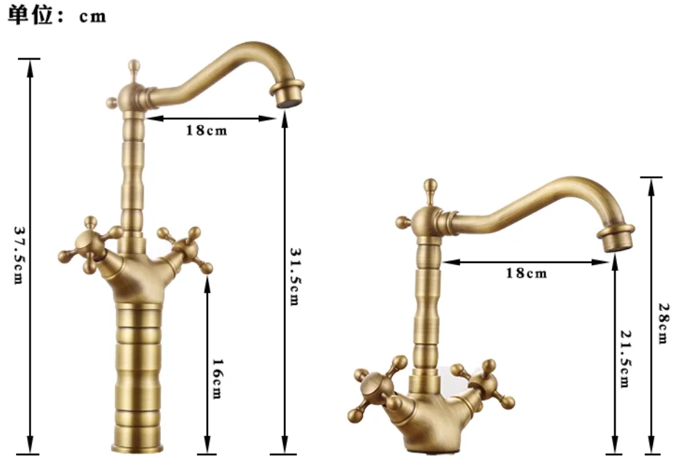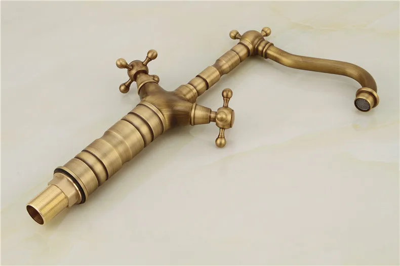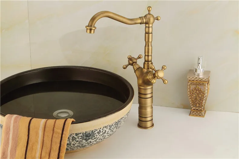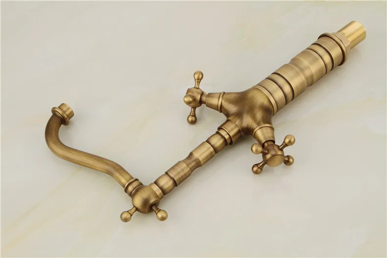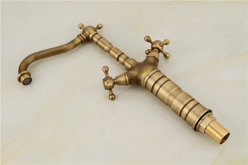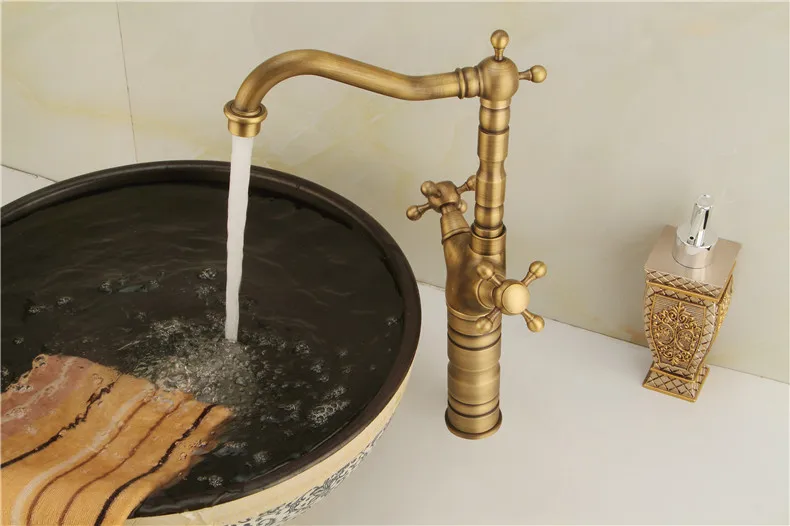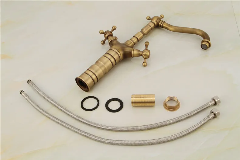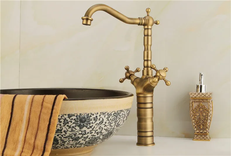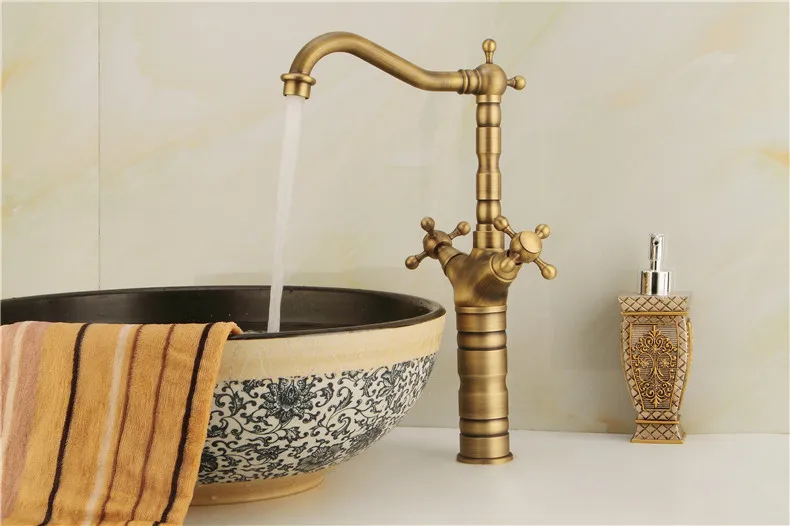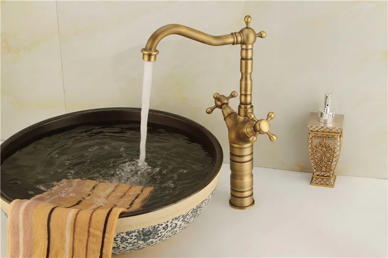 Robinets de lavabo en laiton antique Robinets de lavabo de salle de bains Pivotant Double poignée Chaud Froid Lavabo Bain Mitigeur WC Coq ZLY-6712F