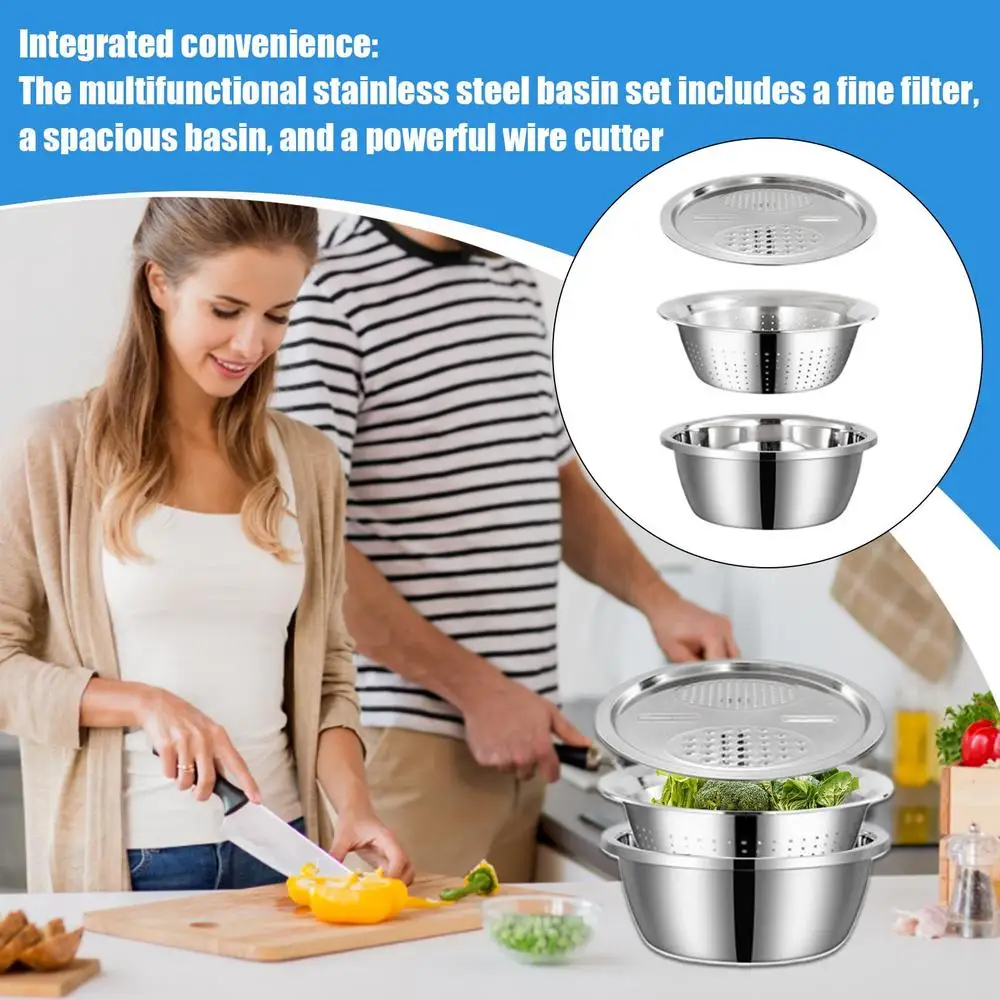 Bassin multifonctionnel en acier inoxydable * 1 ensemble (3 pièces)