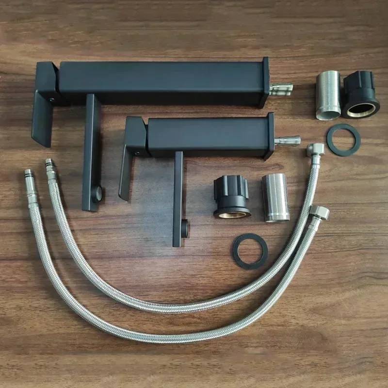 Mélange de robinet long et court, grue de robinet de lavabo noir mat