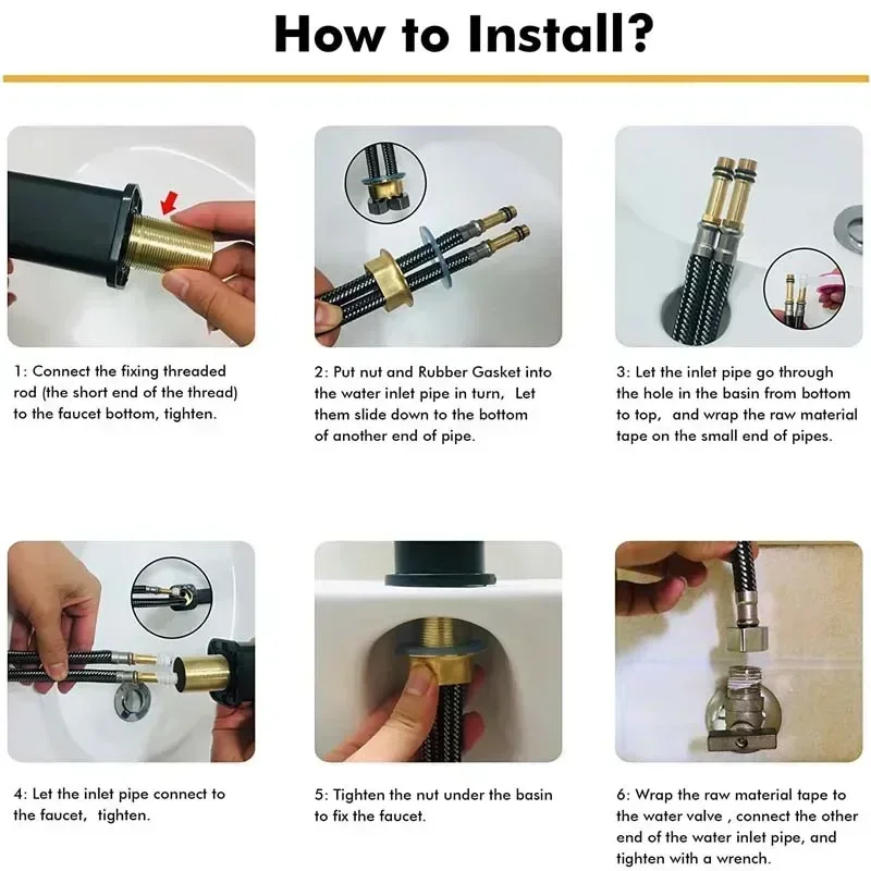 1: Connect la tige filetée de fixation (la courte extrémité du filetage) au fond du robinet, serrer.