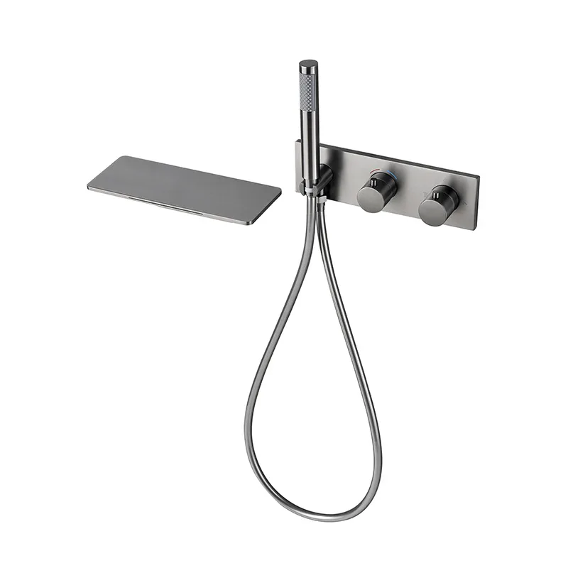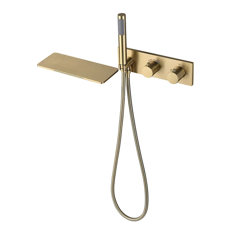 Bec de baignoire thermostatique en or brossé, mural, HOBasin, centre commercial, douchette à main, bain et douche, BF909