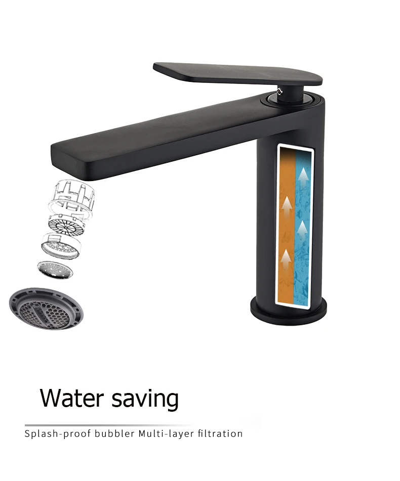 Becola nouveau robinet de lavabo noir salle de bains à levier unique mélangeur d’eau en laiton chaud et froid mélangeur d’évier d’eau de lavabo haut/courte