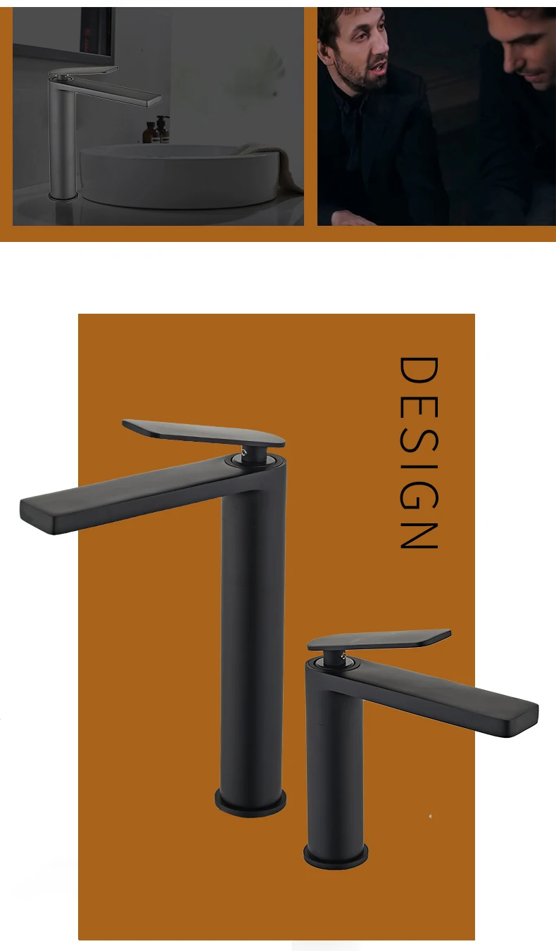 Becola nouveau robinet de lavabo noir salle de bains mitigeur d’eau chaude et froide en laiton mitigeur d’eau de lavabo haut/court