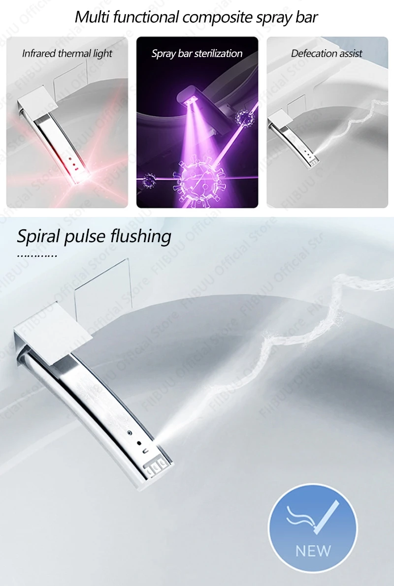 ● Sans restriction par la pression de l’eau ● Protection en mousse résistante aux éclaboussures ● Retournement automatique du couvercle ● Anneau de siège ouvert ● Stérilisation par fusée par pulvérisation ● Lumière chaude infrarouge ● Désodorisation d’aromathérapie ● Éclairage ambiant ● Mémoire double utilisateur ● Reconnaître le rinçage grand-petit ● Eau chauffée instantanée ● Chauffage de l’anneau de siège ● Pré-humide ● Température du siège réglable. ● Goutte lente silencieuse ● Ipx4 étanche ● Lavage oscillant ● Rinçage en cas de panne de courant ● Patinage ● Lavage des hanches ● Protection contre les fuites ● Lavage automatique ● Lavage féminin ● Lavage des enfants ● Température de l’eau réglable. ● Séchage à l’air chaud ● Température de l’air réglable. ● Languette autonettoyante ● Pression d’eau réglable ● Affichage de l’écran ● Télécommande ● Lumière chaude infrarouge