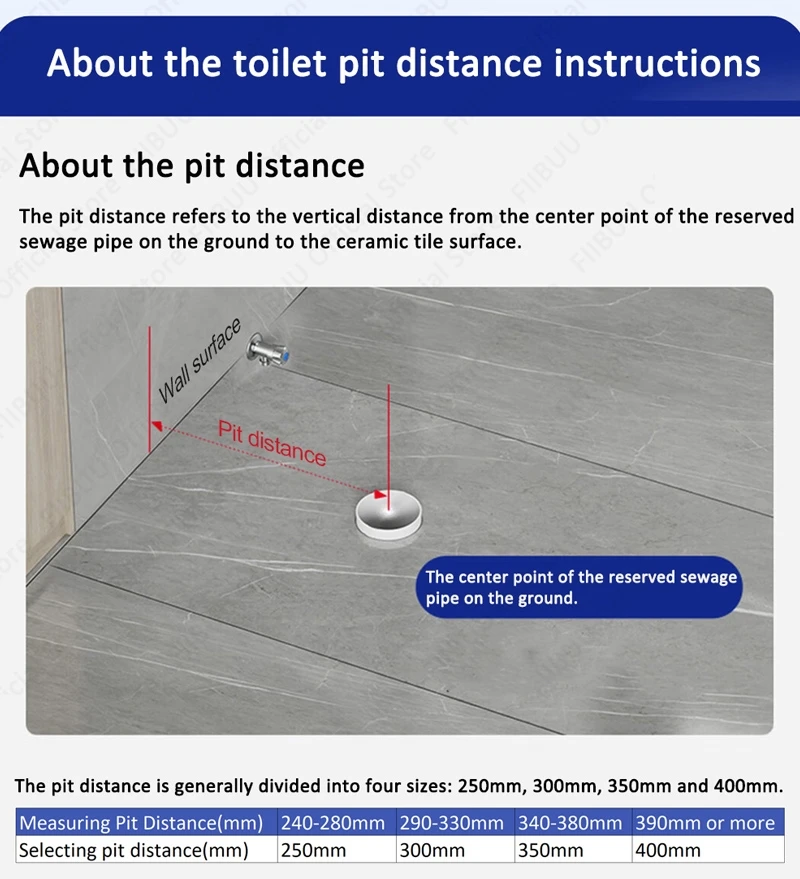 Tout d’abord, déterminez le centre de la sortie du drain des toilettes.Mesurez ensuite la distance horizontale de ce centre vers le mur derrière les toilettes.Vous pouvez utiliser un ruban à mesurer à cet effet.Assurez-vous de mesurer avec précision pour vous assurer de choisir les toilettes de bonne taille pour votre salle de bain.