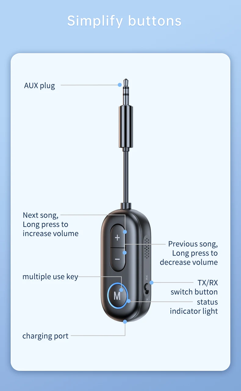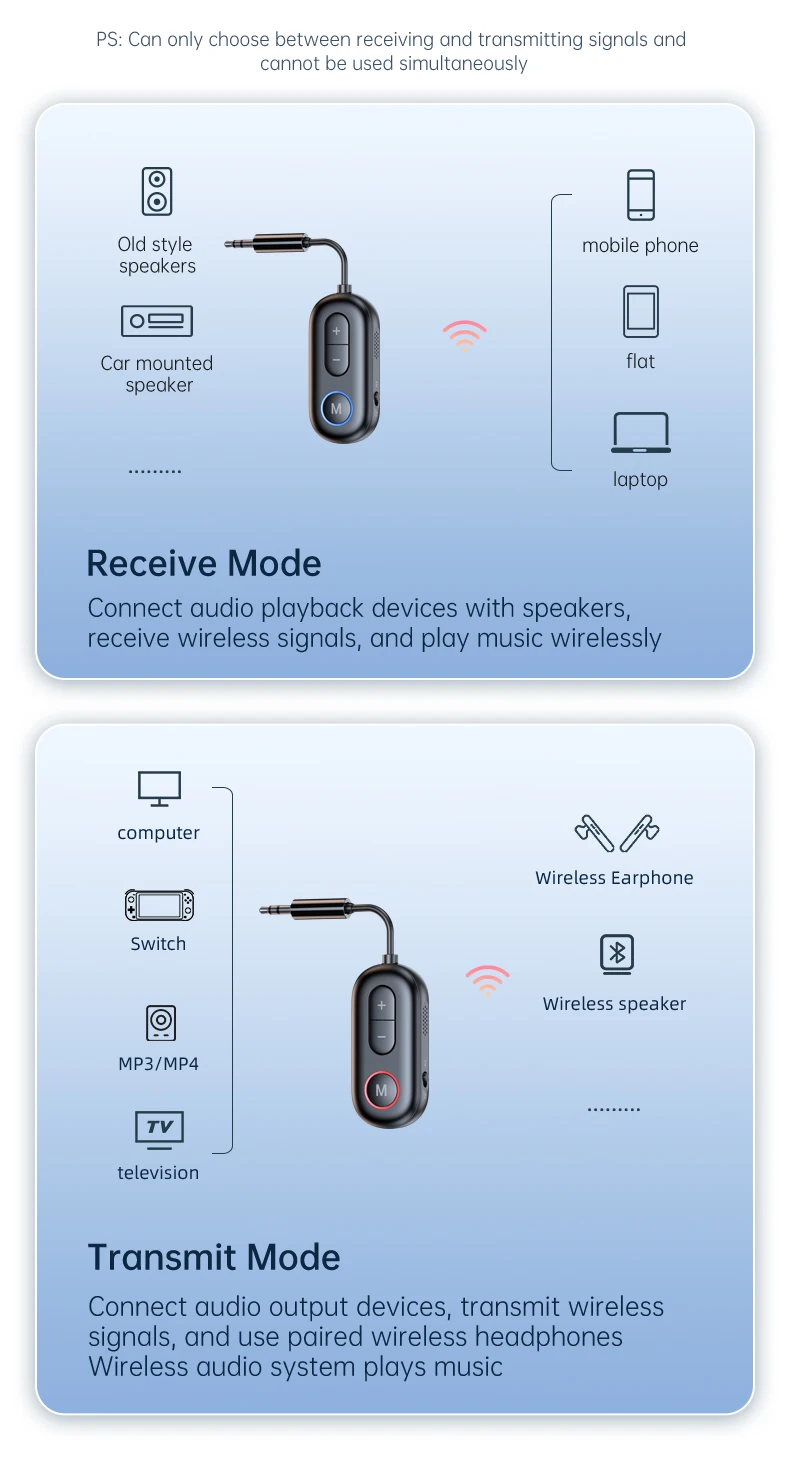 - Numéro de Modèle: 2 in 1 bluetooth audio transmitter receiver