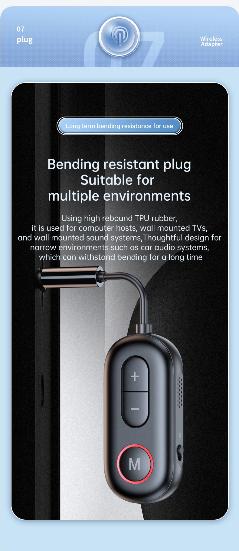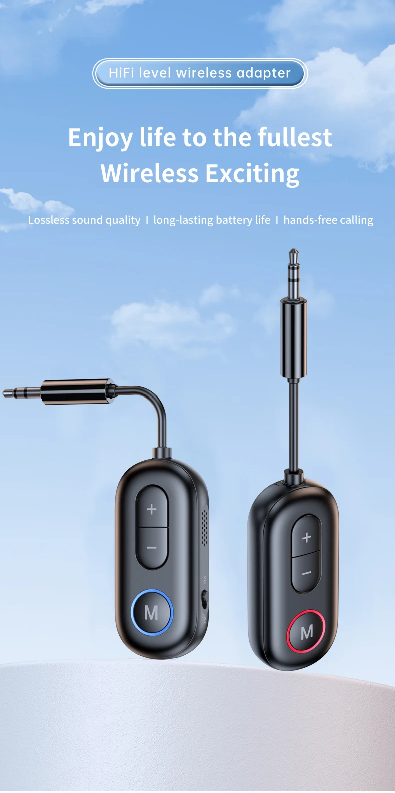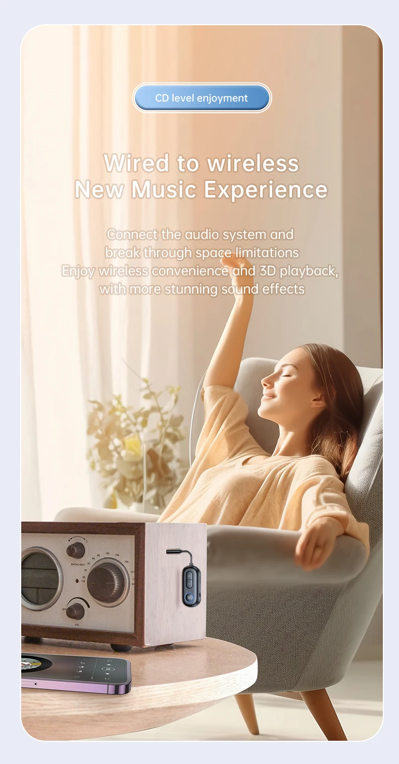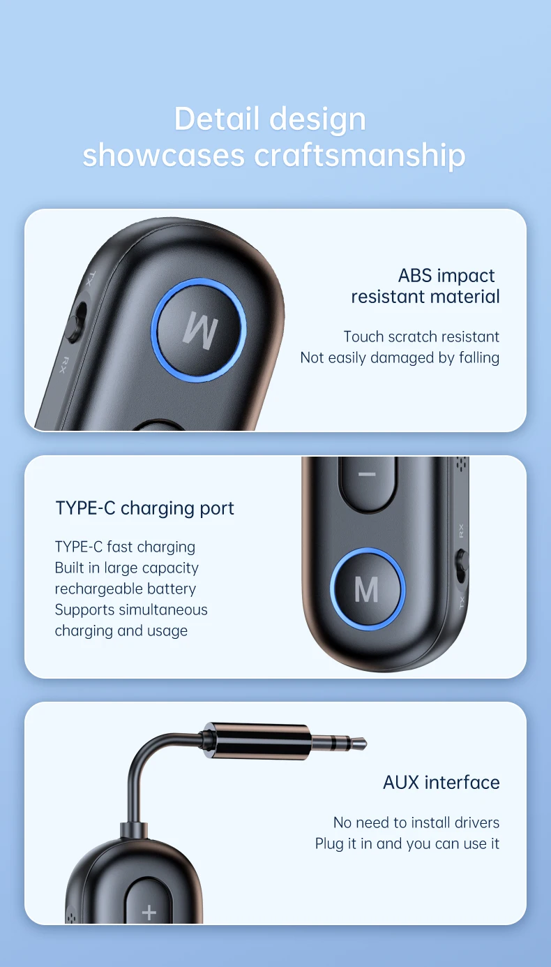 2 en 1 Bluetooth 5.3 émetteur audio récepteur 3.5MM AUX Hifi stéréo musique adaptateur sans fil avec micro avion d’aviation convertisseur de casques pour voiture avion TV PC casque haut-parleur amplificateur