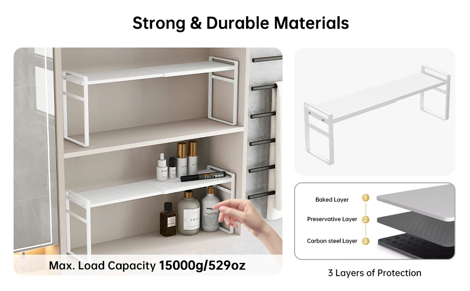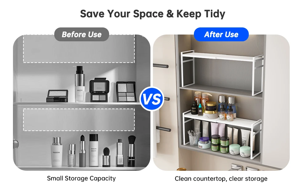 • Permet d'organiser et ranger efficacement les articles divers dans l'armoire de la salle de bain