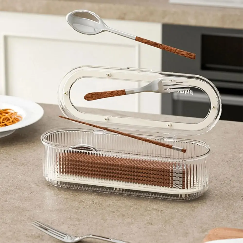 -Boîte à baguettes anti-poussière: Cet organisateur d’ustensiles de cuisine dispose d’un couvercle pour protéger de la poussière, garantissant que vos baguettes et ustensiles sont propres et prêts à l’emploi.