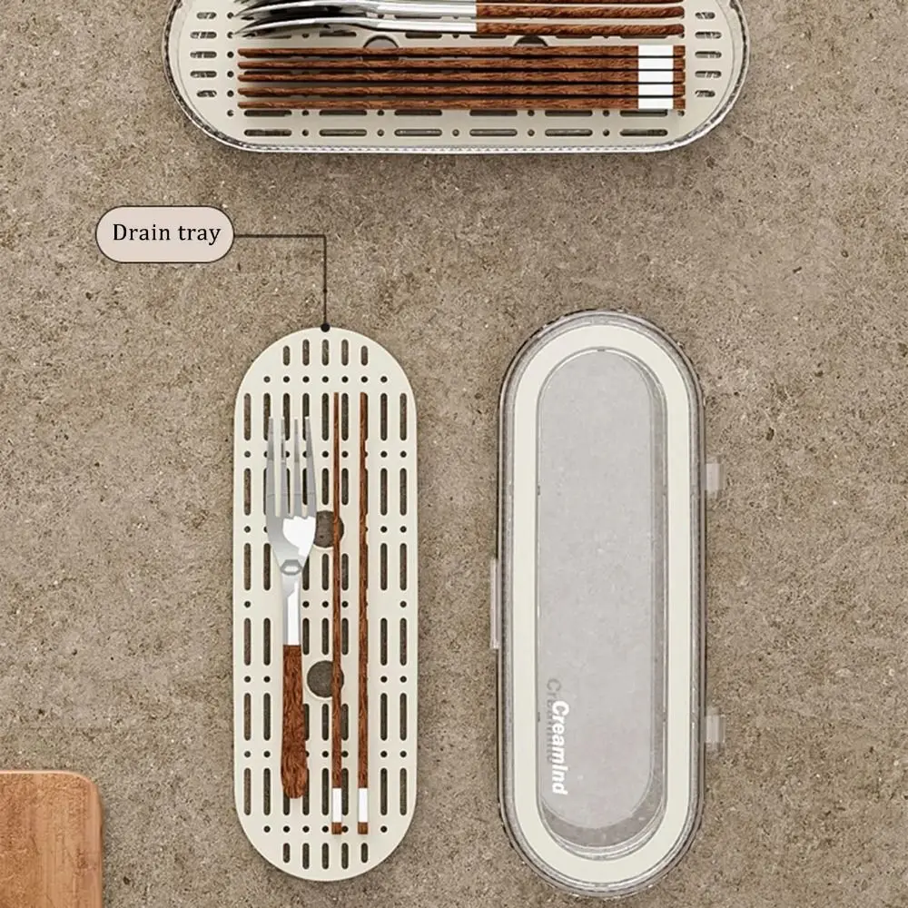 -Plateau d’égouttage détachable: la boîte de rangement des couverts est livrée avec un plateau d’égouttage amovible qui recueille efficacement l’eau, gardant vos baguettes au sec, ce qui le rend pratique pour enlever tout excès d’eau et facile à nettoyer.