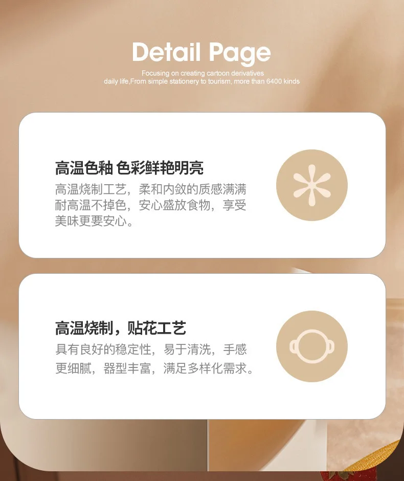 Processus de tir à haute température, texture douce et introvertie pleine, résistant aux hautes températures sans décoloration, sûr pour contenir des aliments, profitez-en