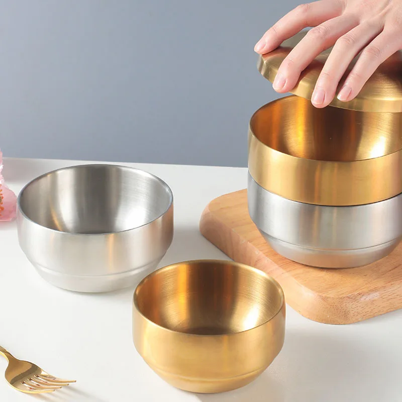 Bol à riz Double en acier inoxydable 304, bol à soupe, bol de riz cuit à la vapeur, petit bol Anti-brûlure pour enfant pour Cuisine coréenne