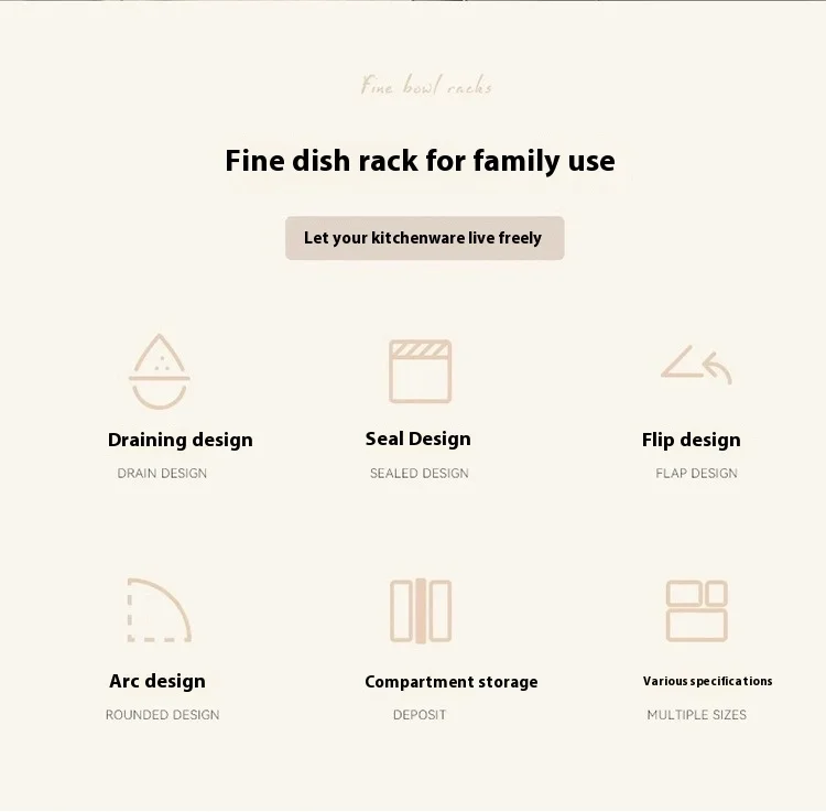 Le « bol multifonctionnel et support de vaisselle » conçu spécifiquement pour les cuisines modernes résout parfaitement les problèmes tels que la vaisselle en désordre, l’humidité, la moisissure, la poussière et les infestations d’insectes!La très grande capacité peut facilement stocker des bols, des assiettes, des baguettes, des couteaux, des fourchettes et d’autres ustensiles de table, et la conception en couches et en grille rend le comptoir de cuisine bien organisé.Doté d’une conception scellée avec un couvercle pour éviter la poussière et les insectes, et équipé d’un bac de vidange intégré pour un séchage rapide de la vaisselle, il empêche la croissance bactérienne et convient à une utilisation dans divers contextes tels que les maisons, les restaurants et les dortoirs.La palette de couleurs jaune crème est chaleureuse et polyvalente, rehaussant l’apparence de la cuisine et créant un espace de rangement curatif!
