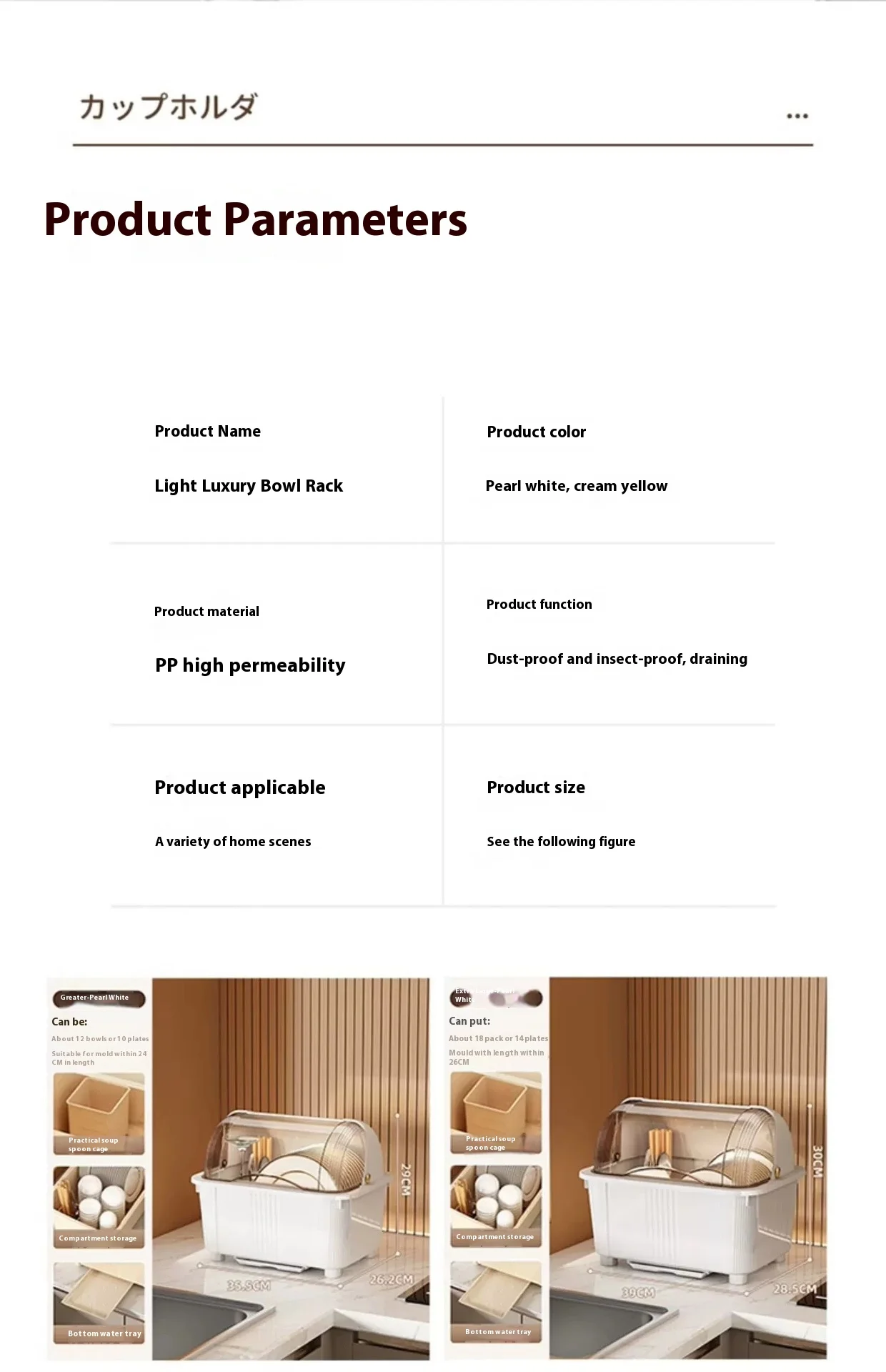 Le « support multifonctionnel pour bols et plats » conçu spécifiquement pour les cuisines modernes résoutent parfaitement les problèmes tels que les vaisselle en désordre, l’humidité, le moisissure, la poussière et les infestations d’insectes! La très grande capacité peut stocker facilement des bols, des assiettes, des baguettes, des couteaux, des fourchettes et d’autres vaisselle, et une conception en couches et en grille pour comptoir de cuisine bien organisé. Avec un design scellé avec un couvercle pour empêcher la poussière et les insectes et équipé d’un bac de vidange intégré pour une séchage rapide de la vaisselle, empêche la croissance bactérienne et convient à l’utilisation dans diverses paramètres tels que les maisons, les restaurants et les dortoirs. Le schéma de couleurs jaune crémeux est chaleureux et polyvalent, améliorant l’apparence de la cuisine et créant un espace de stockage de guérison!