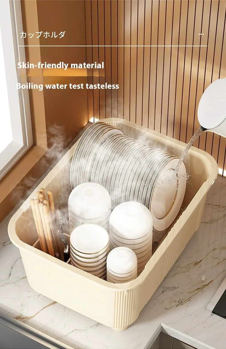 Bol de cuisine de grande capacité, organisateur de rangement, étagère à vaisselle, boîte de rangement de Drainage anti-poussière, égouttoir à vaisselle, accessoires de cuisine