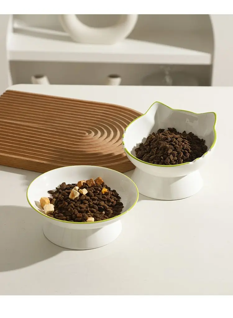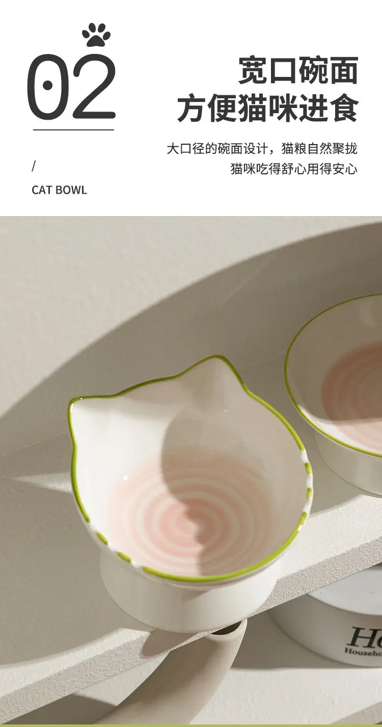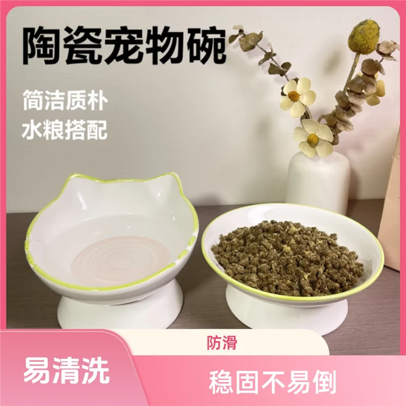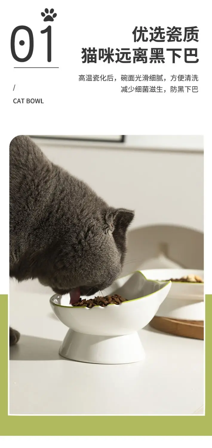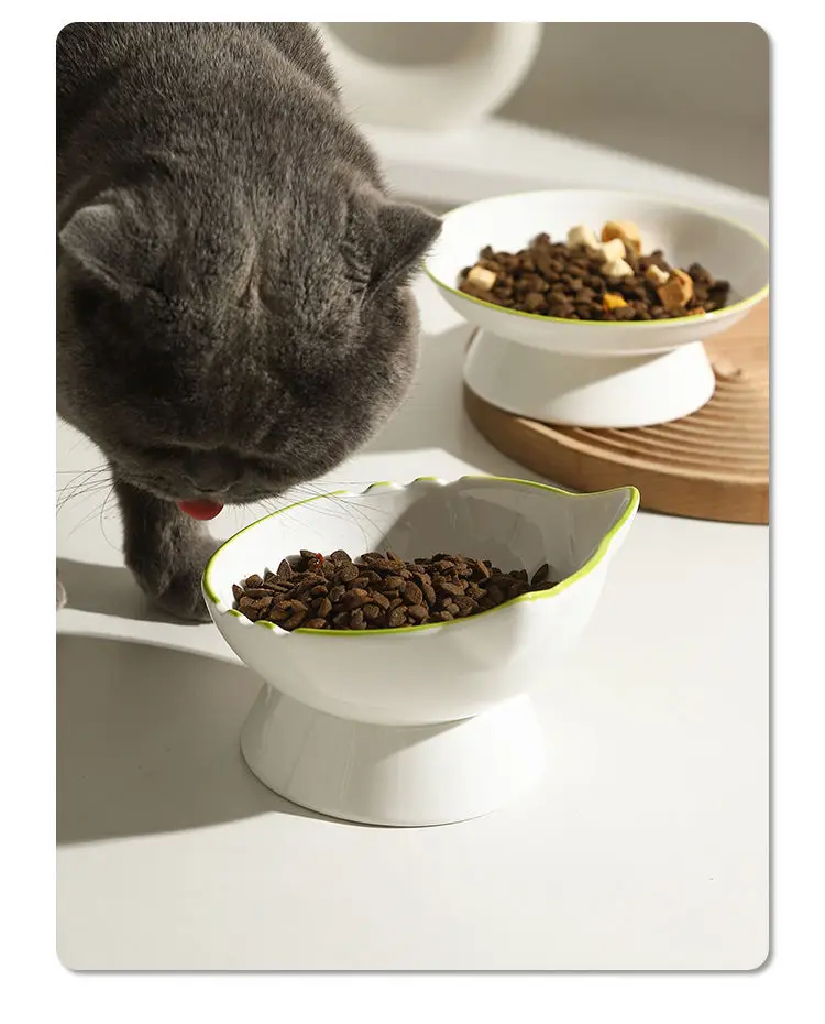 Bol de riz en céramique pour animaux de compagnie, menton de chat, bassin alimentaire, bol de ration oblique, manger et eau potable pour protéger le cervical