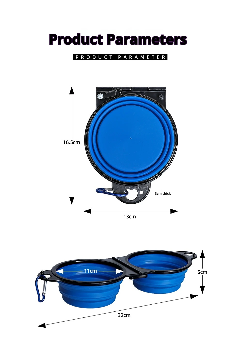 • Pliable et portable: Il peut être facilement plié dans une forme compacte, ce qui le rend pratique à transporter.Qu’il soit placé dans un sac à dos, une poche ou accroché à un sac pour animaux de compagnie, il ne prend pas beaucoup de place.Il convient à divers scénarios extérieurs, tels que les voyages, le camping, la marche, etc., permettant aux animaux d’avoir un bol de nourriture et un bol d’eau adaptés à tout moment et n’importe où.