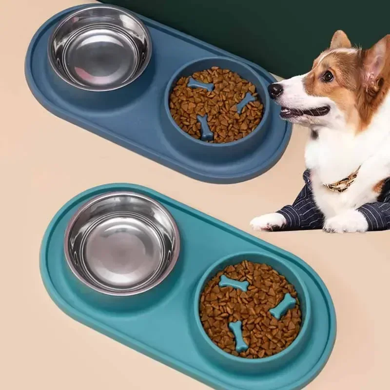 Bol de nourriture lente pour chien Bol pour animaux de compagnie anti-étouffement en acier inoxydable Bol de nourriture pour chien et chat de petite et moyenne taille Bol de nourriture pour chien Fournitures pour animaux de compagnie Double bol