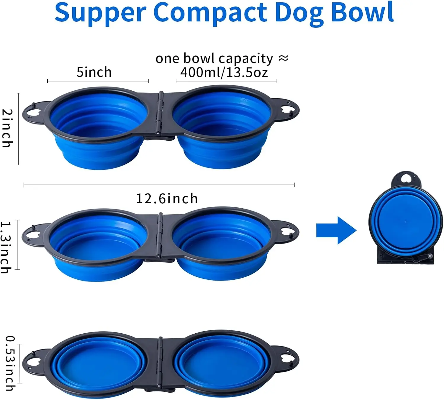 Bol double suspendu pliant pour animaux de compagnie, bol pour chat et chien, vaisselle d’extérieur portable pour chat et chien, bol d’eau potable en silicone