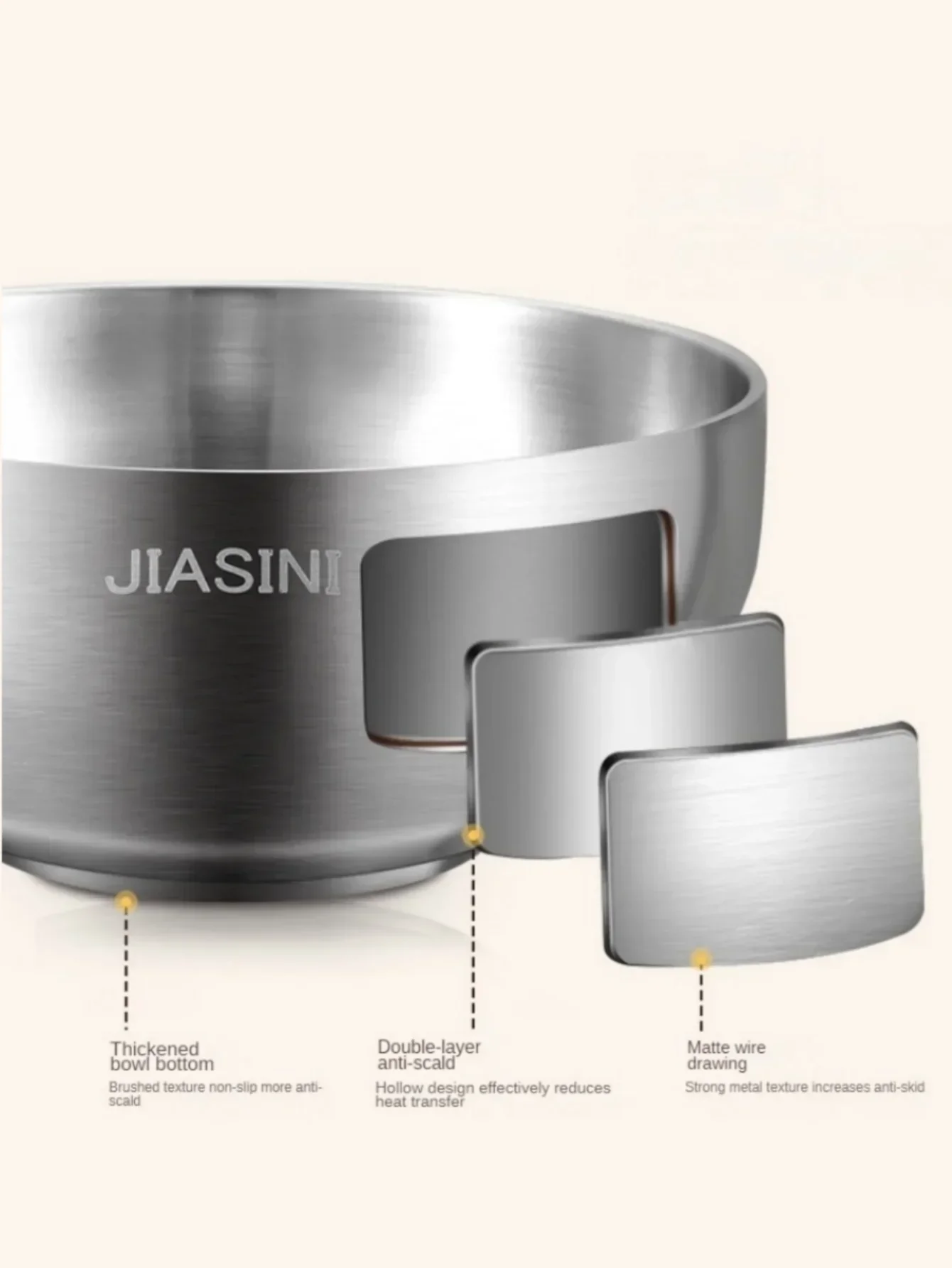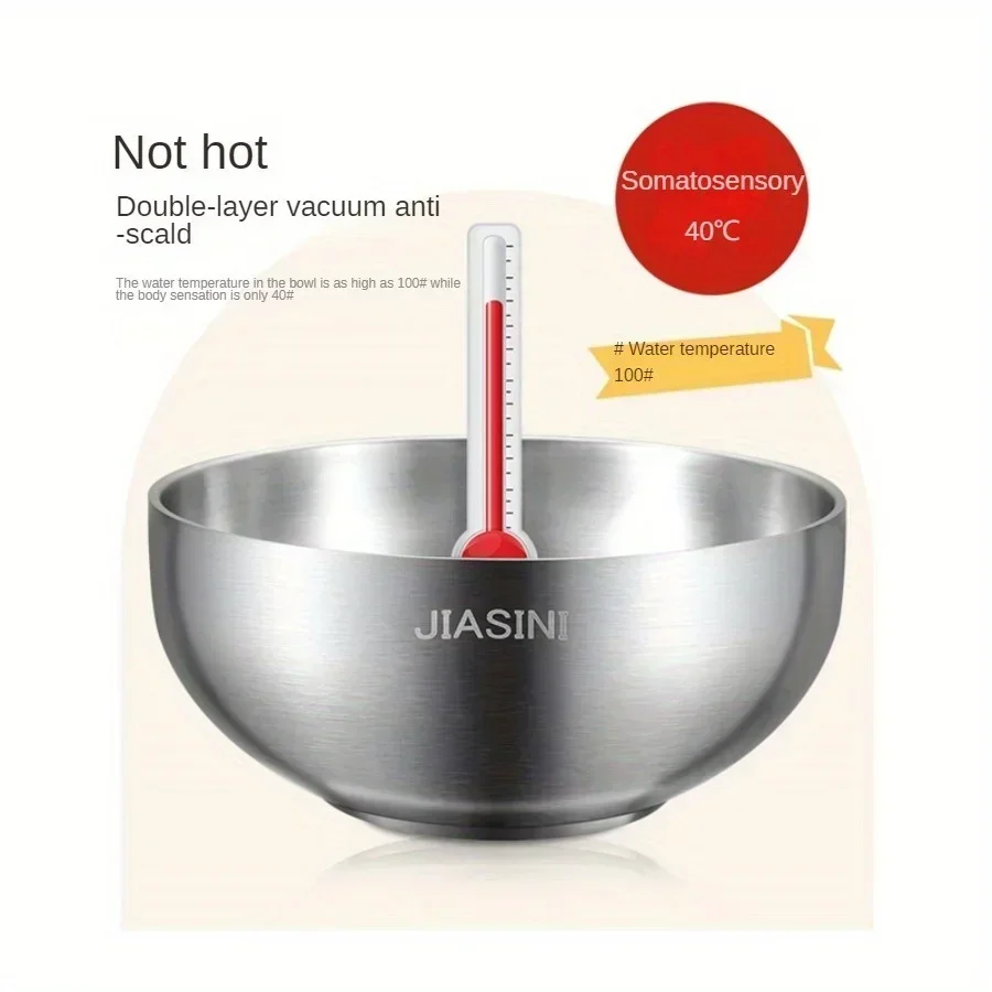 Bol en acier inoxydable de grande capacité, bol de fruits à salade à double isolation, bol de riz léger, nouilles anti-chute dans un bol à soupeBol en acier inoxydable de grande capacité, bol de fruits à salade à double isolation, bol de riz léger, nouilles anti-chute dans un bol à soupe