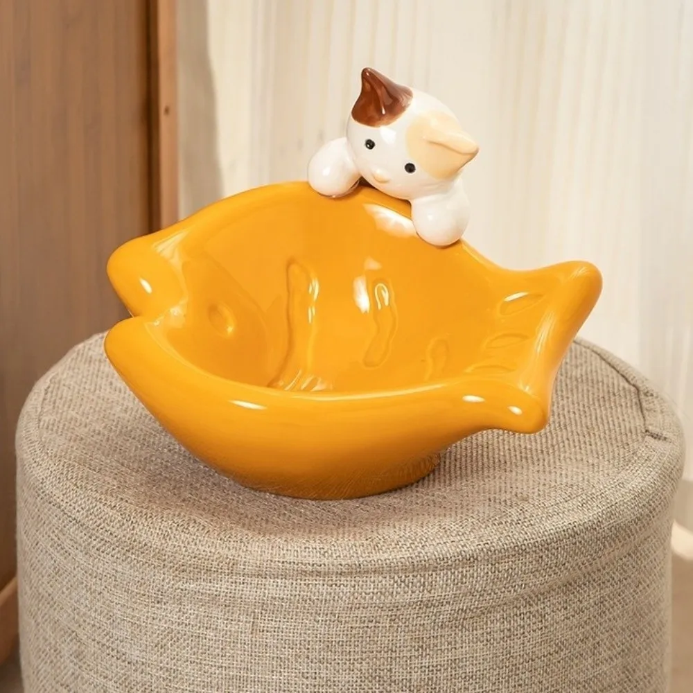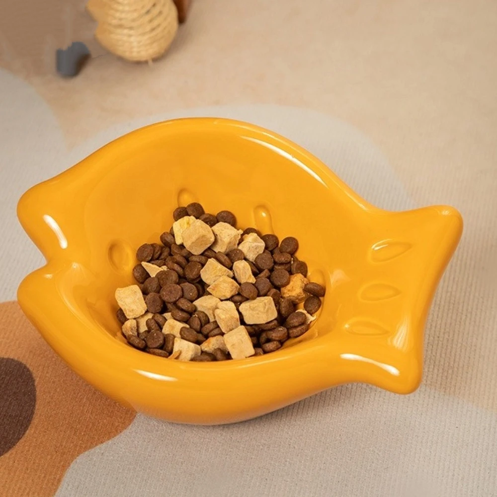 Bol en céramique pour chat de dessin animé, grand calibre, Design incliné, bassin d’eau potable pour animaux de compagnie, Base Anti-basculement, bol de Protection cervicale pour rasage de poisson
