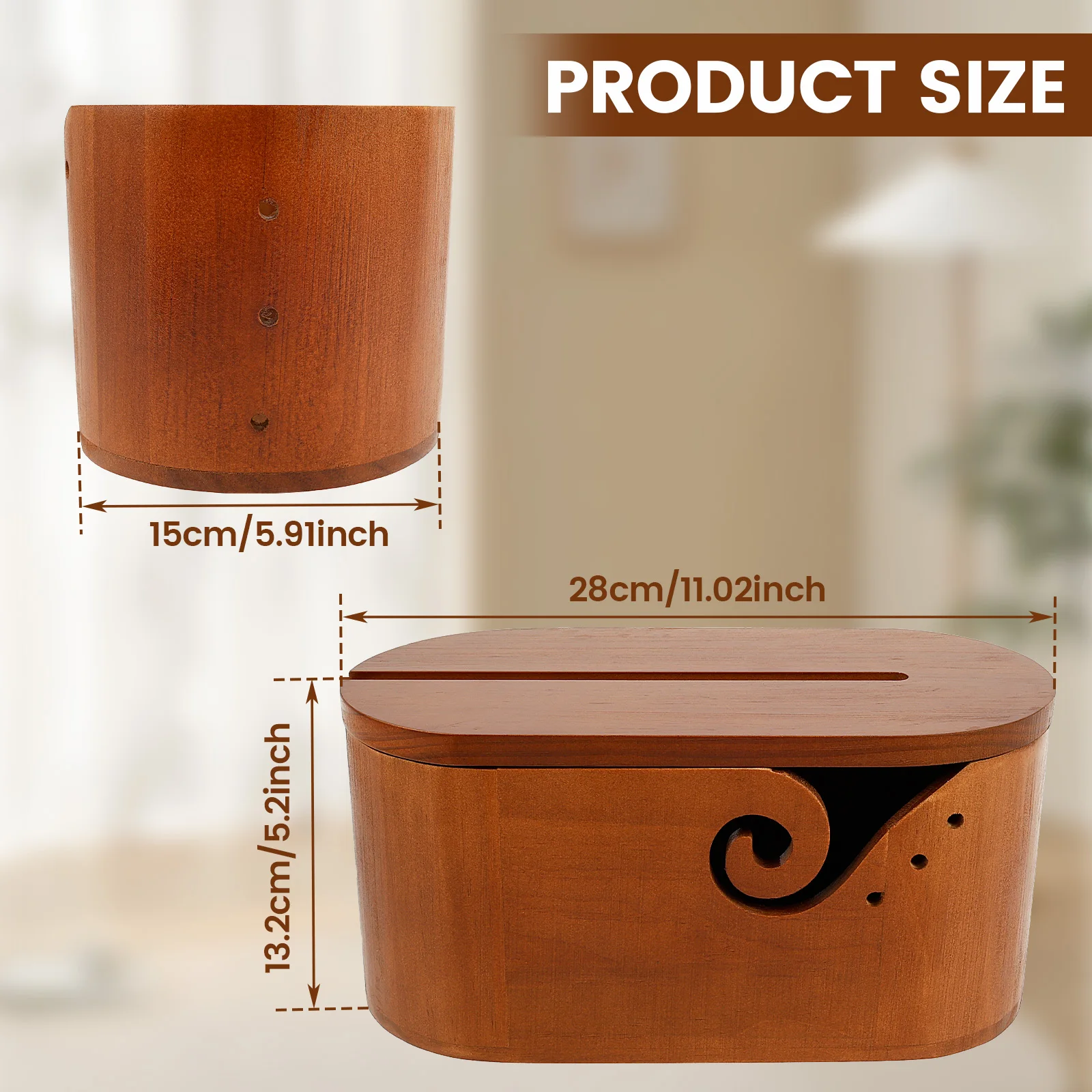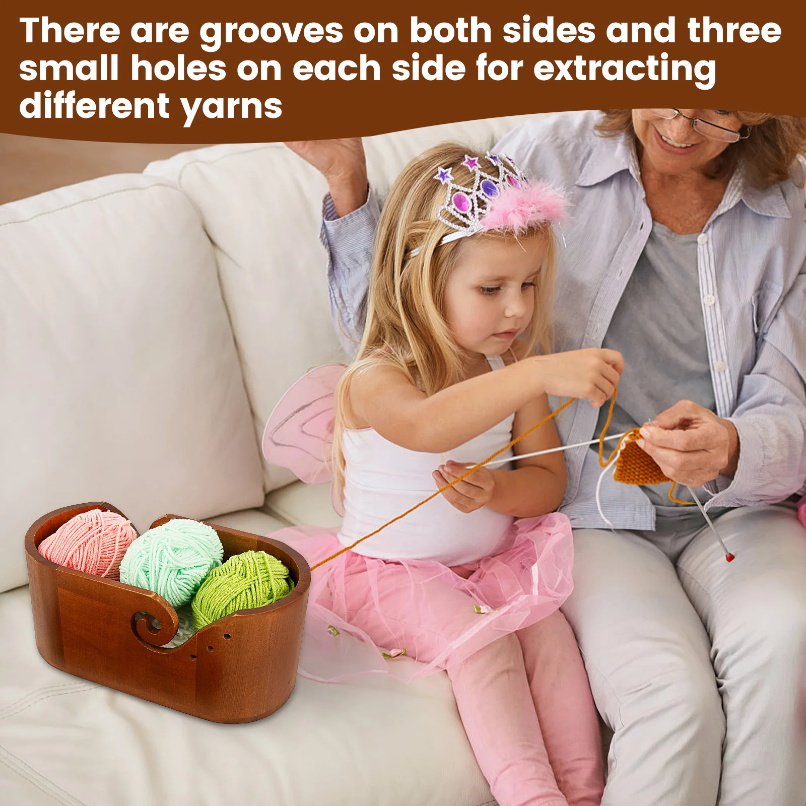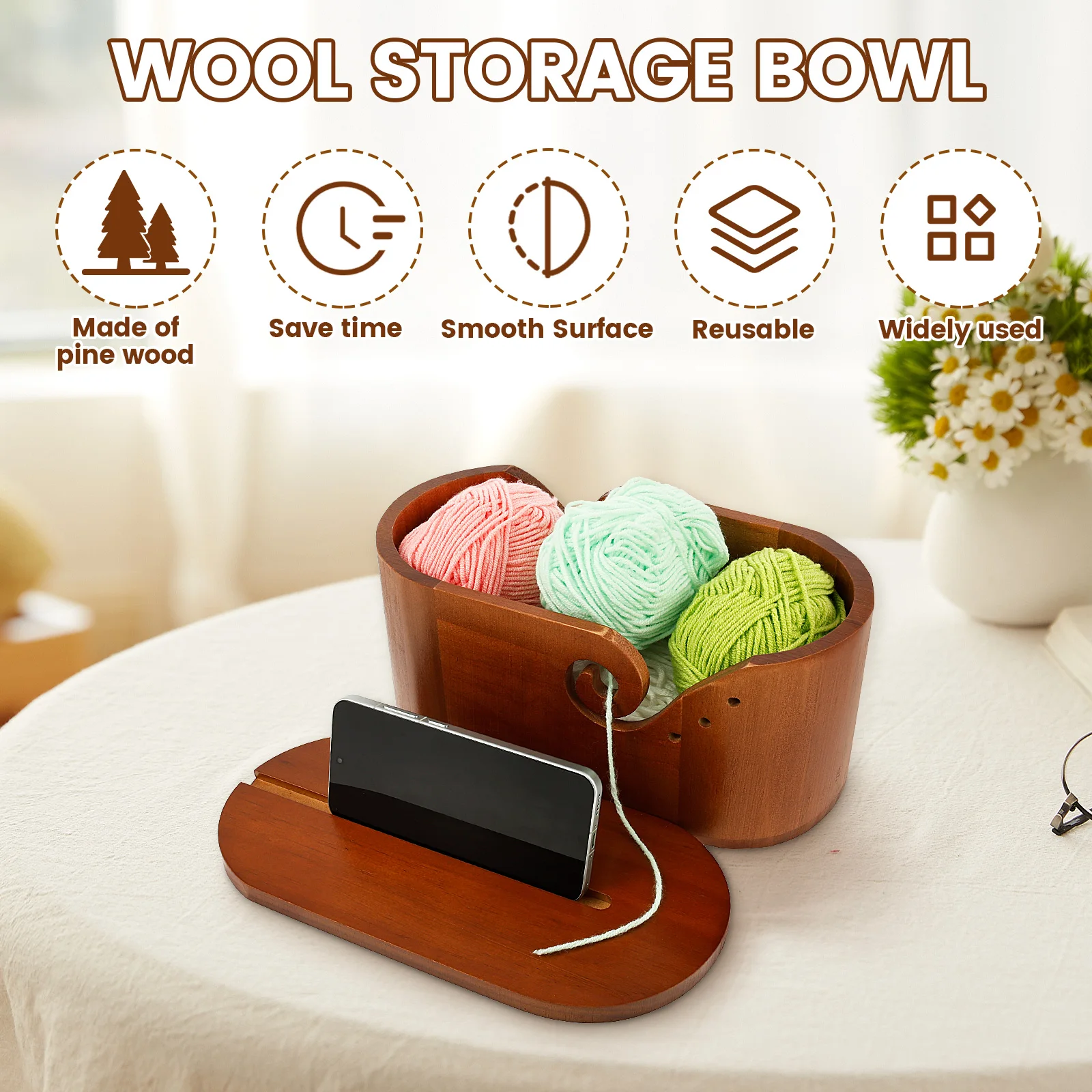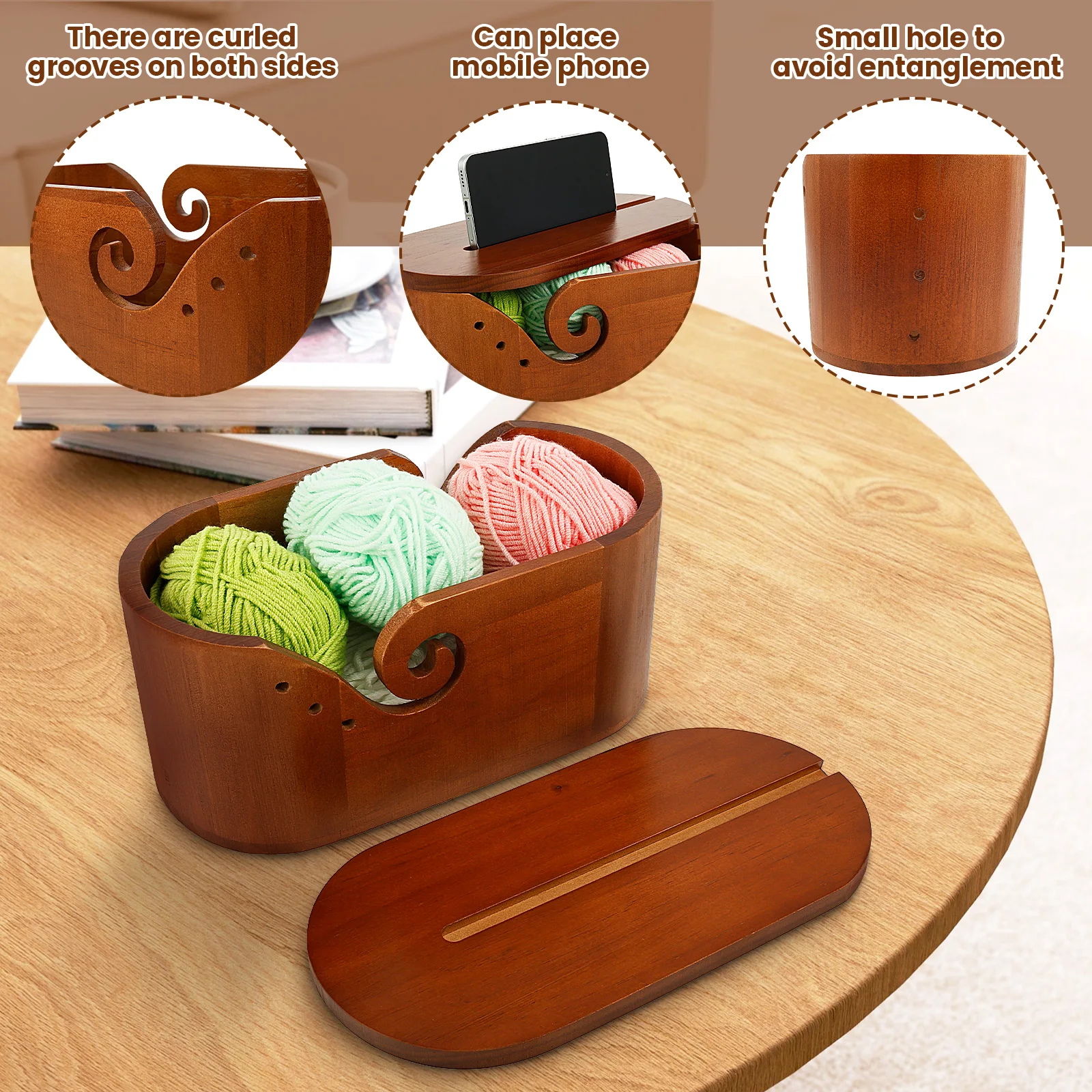 Bol ovale en fil de bois avec couvercle, support de rangement de fil à tricoter lisse, bol au Crochet avec Double fente de bouclage pour le Crochet