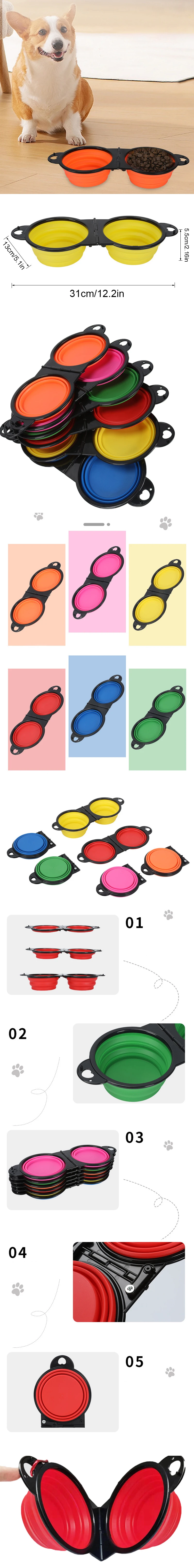 Bol 2 en 1 pour chien, bol Double pliable Portable pour animaux de compagnie, bols d’eau pliables en Silicone pour chien, voyage en plein air, bol d’alimentation pour chien et chat